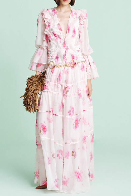 yuri v-neck Floral Embroidered Velvet maxi Dress in black