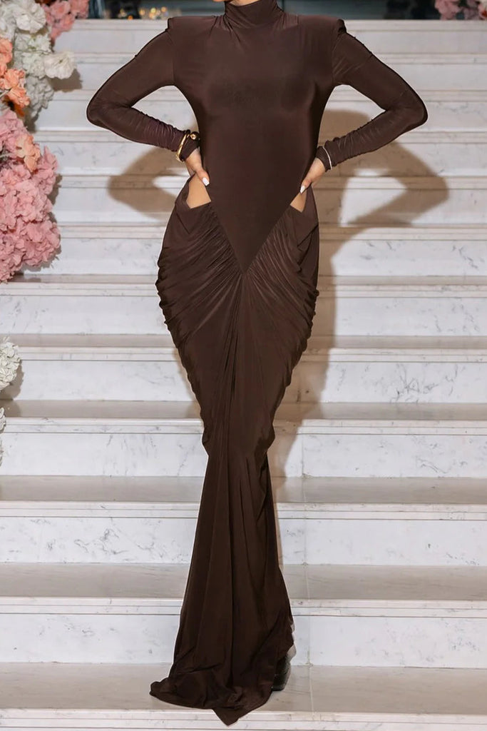 jacqueline Turtleneck Long Sleeve Cutout bodycon Gown in brown