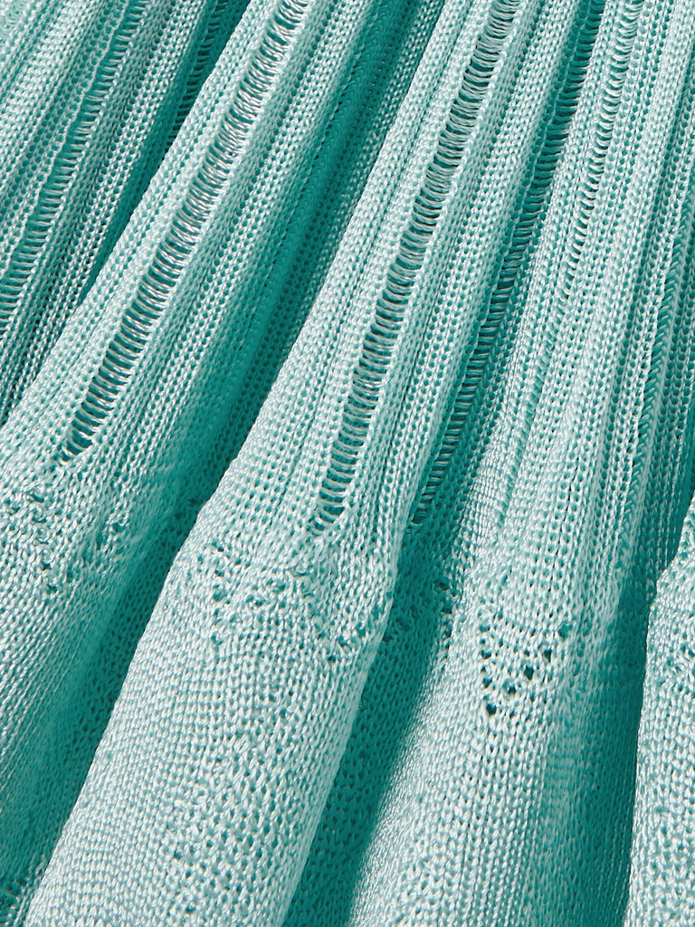This Archetypes ribbed pointelle-knit mini dress in green is a versatile and stylish addition to any wardrobe. The ribbed design adds texture and dimension, while the pointelle-knit creates a delicate and feminine look. With its vibrant green color, this dress is perfect for making a statement.