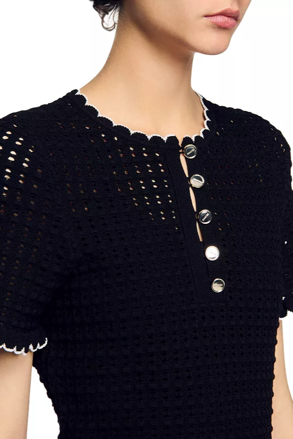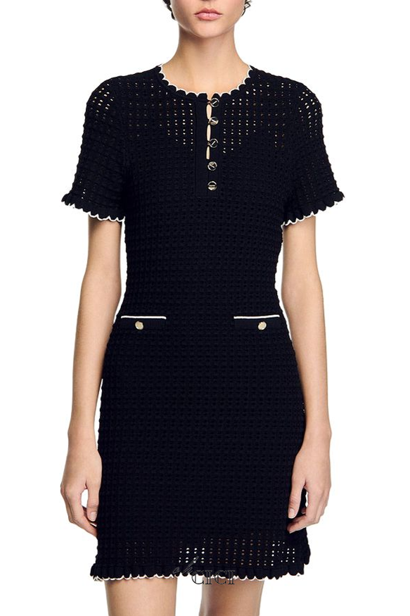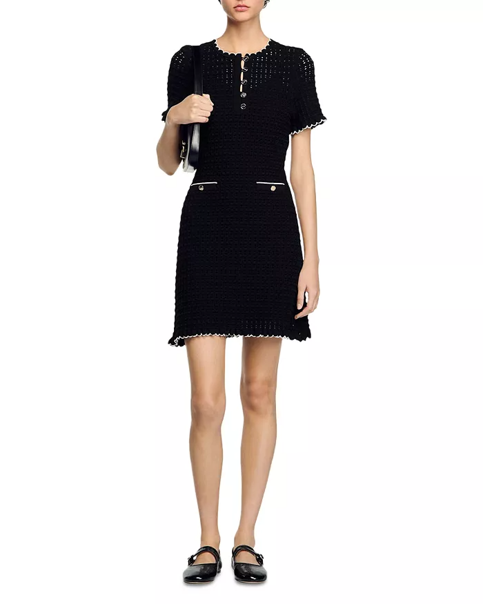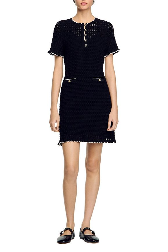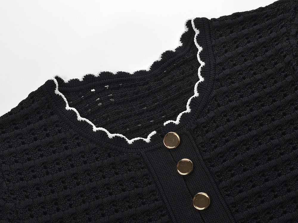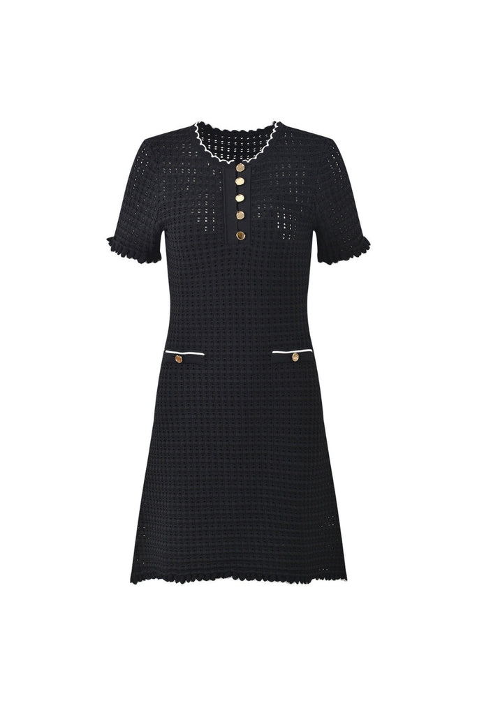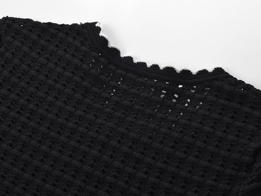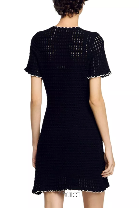 The Simona Hollow Knit Mini Dress in black offers a sophisticated silhouette with its expertly crafted open-knit pattern. Designed to balance texture and breathability, this dress contours the body while providing subtle visual intrigue through its hollow-knit detailing. Its mini length enhances modern appeal, making it ideal for both stylish daywear and elegant evening occasions. Crafted for those who appreciate refined construction and understated allure, this piece elevates any wardrobe with its sleek, versatile design.