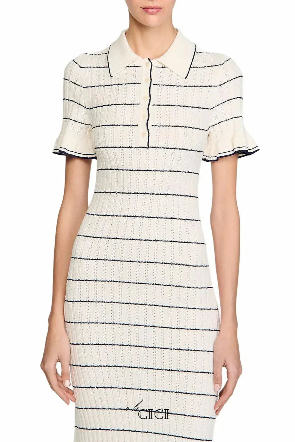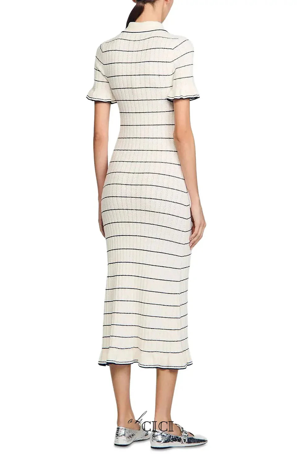 stripe Knitted Maxi Dress in ecru – OH CICI
