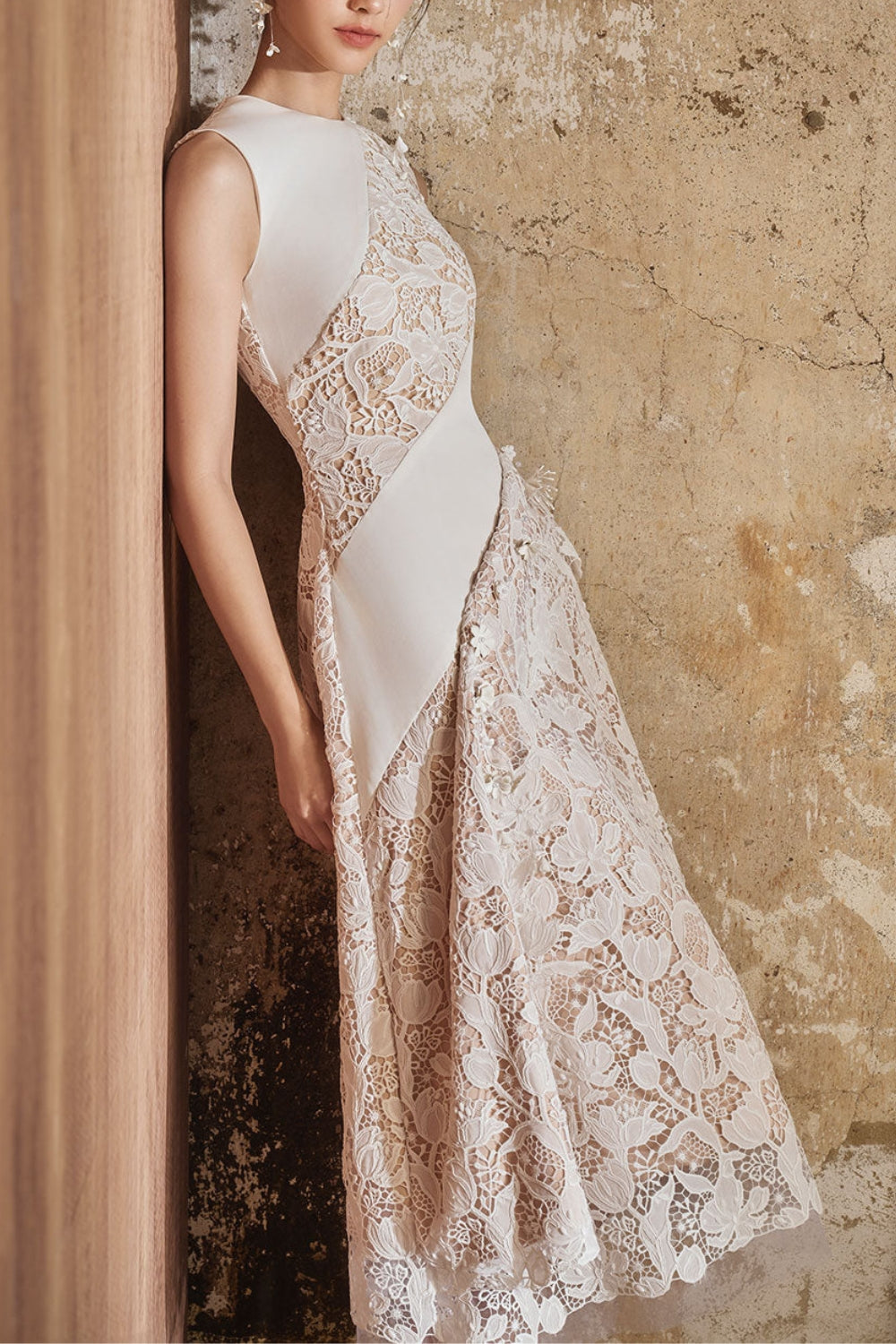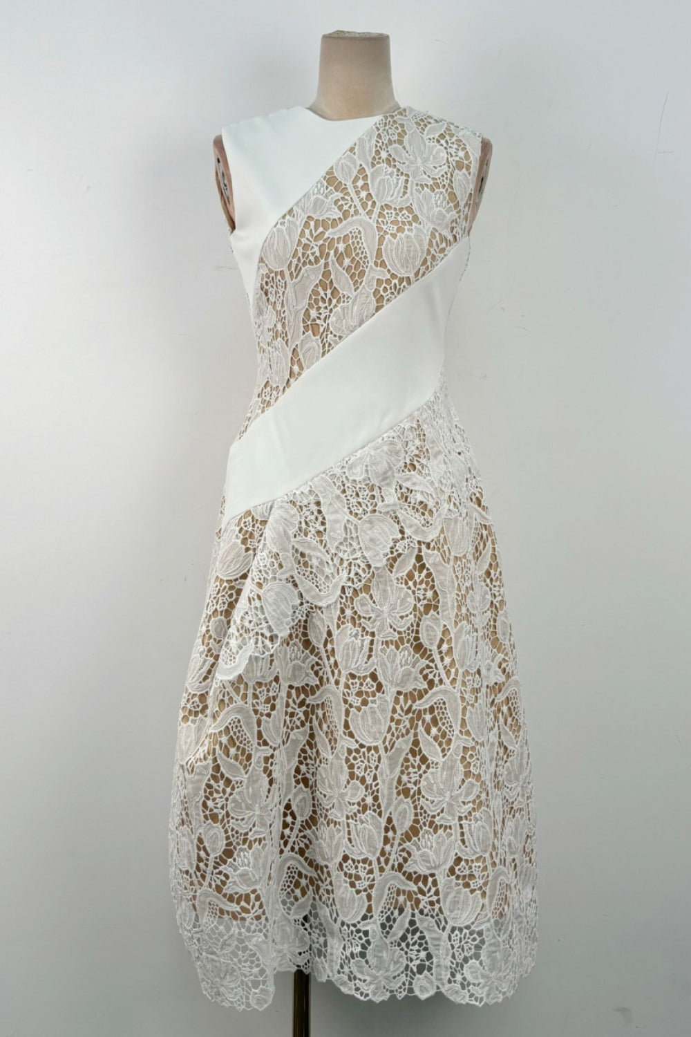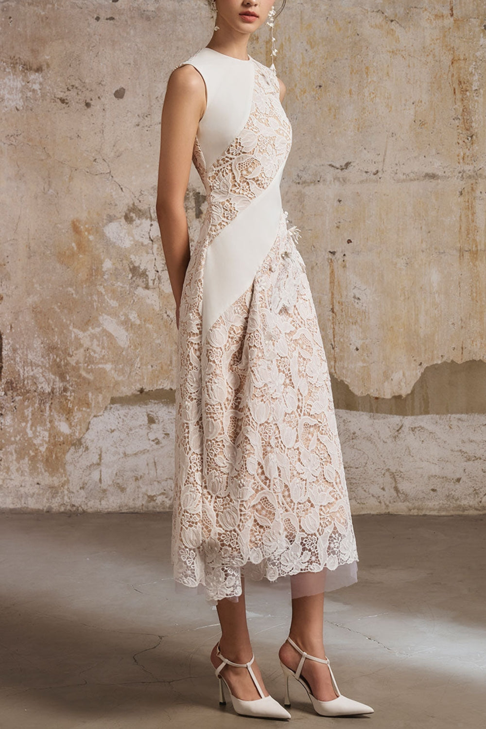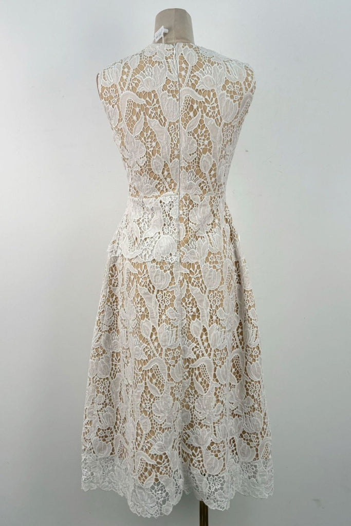 A-line Jewel Neck Lace Midi Dress In White – OH CICI