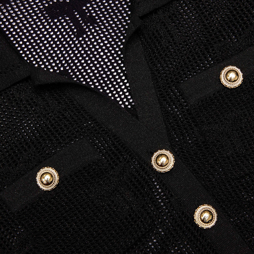 Bows and crochet meet to perfection in this sleek knit dress. A belted peplum waist and gold buttons add feminine charm – show off its fitted midi skirt with statement heels at the next soirée.
