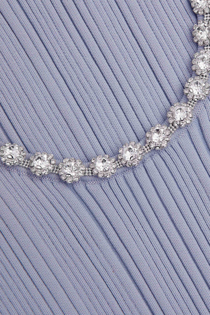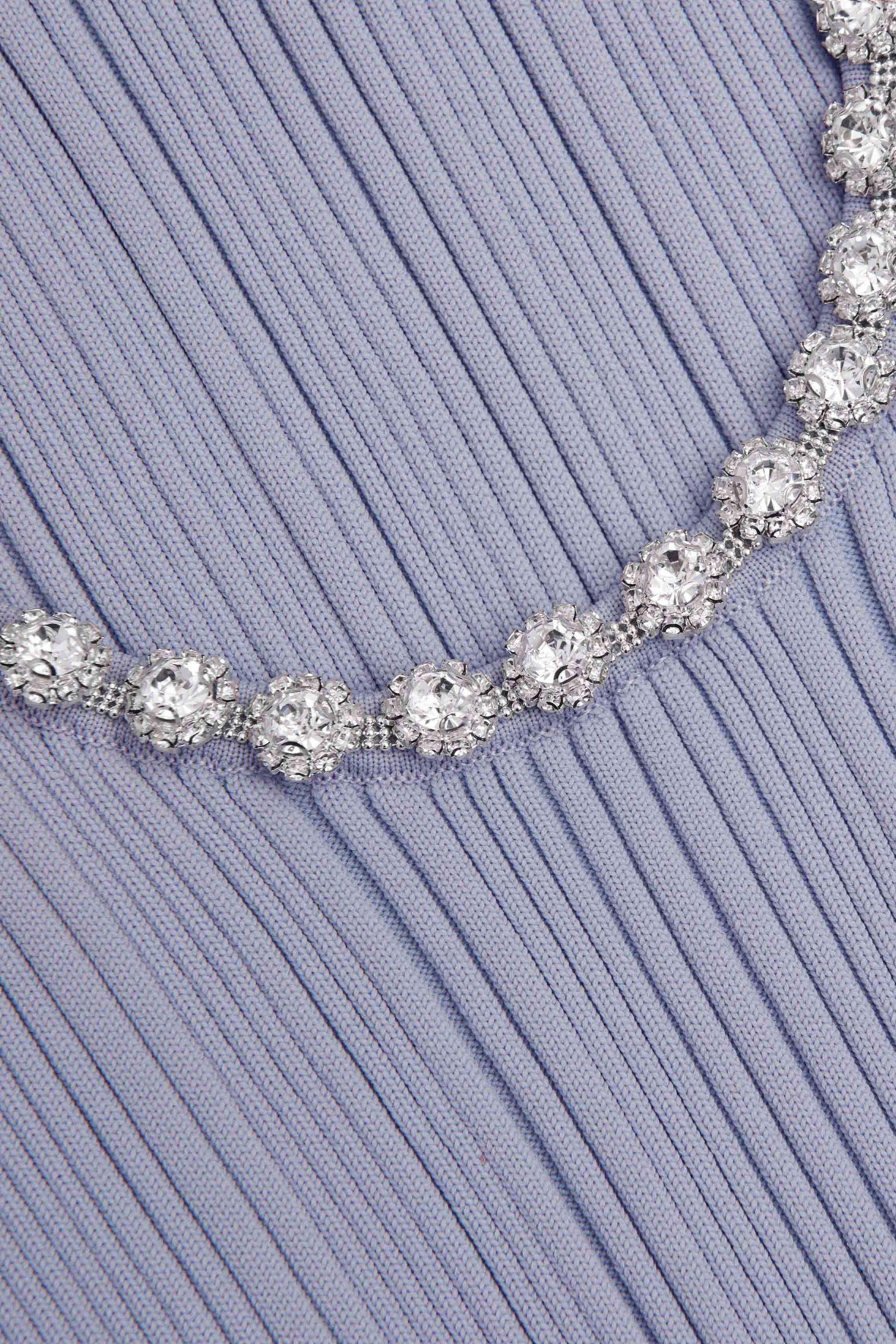 Comfort meets opulence in this midi dress. Cut from ribbed knit for a stretchy fit, a scoop neckline and full, flared skirt add elegant detail. Match its diamanté trims with our statement earrings.