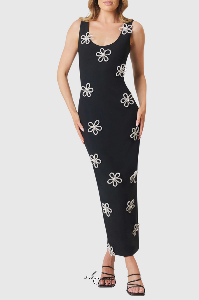 Introducing the Edmark Flower Crystal Embellished Midi Bandage Dress - the epitome of elegance and luxury. Exquisitely crafted with intricate floral crystal detailing, this dress exudes sophistication and exclusivity. Perfect for any special occasion, it is designed to make you feel like a beautiful blooming flower.
