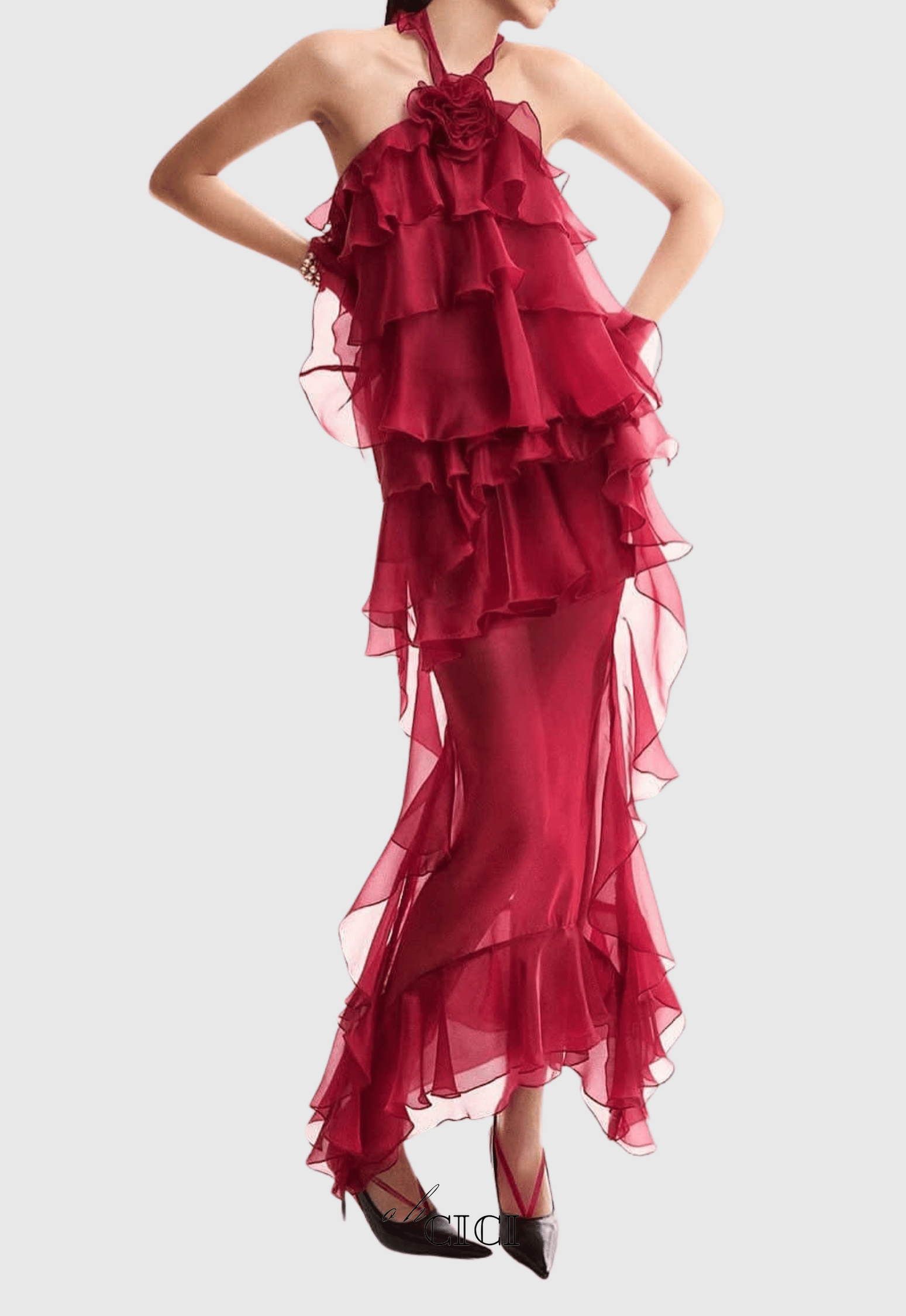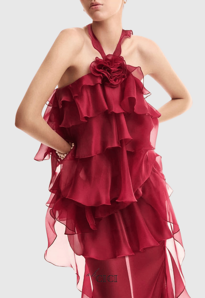 Twirl into summer with our Eunice Floral Halter Midi Dress! This ravishing red chiffon number features a flirty halter neckline and playful ruffles that dance with every step. The breezy fabric and feminine silhouette make it perfect for garden parties, date nights, or whenever you want to feel absolutely fabulous!