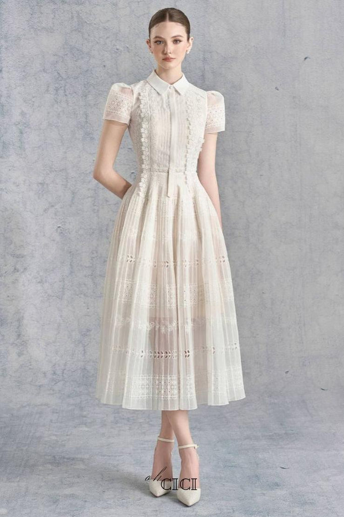 Lace hollow embroidery midi dress in apricot – OH CICI