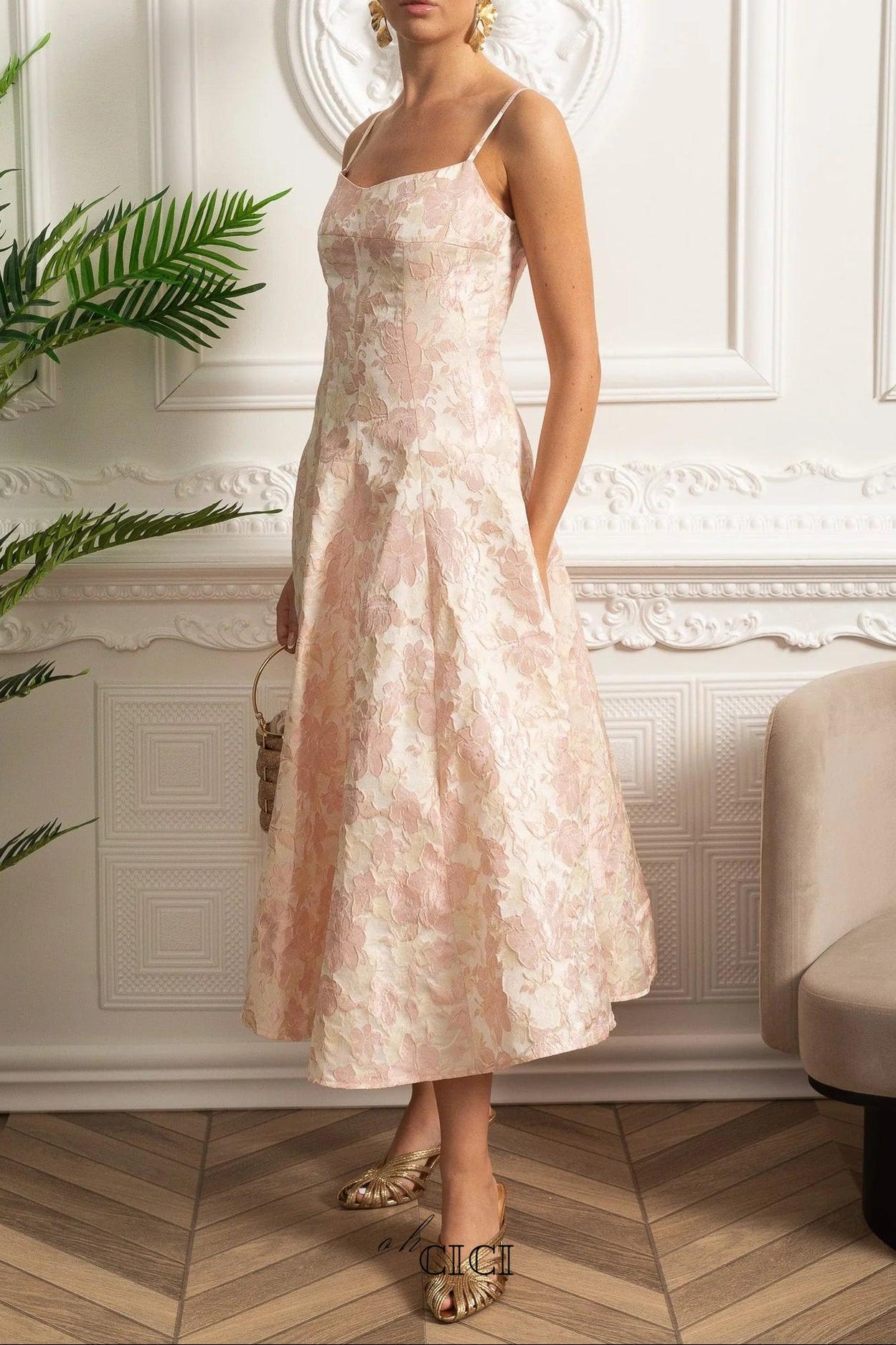 The Lauren Jacquard Midi Dress combines sophisticated tailoring with timeless elegance. Crafted in luxurious jacquard fabric, this midi silhouette features an intricate floral motif that adds visual depth and refinement. The blush pink hue offers a versatile neutral that transitions seamlessly from day to evening occasions. The structured jacquard construction provides subtle texture and movement, while the midi length delivers a polished, elongated silhouette. Perfect for those seeking a dress that balances understated luxury with refined style.