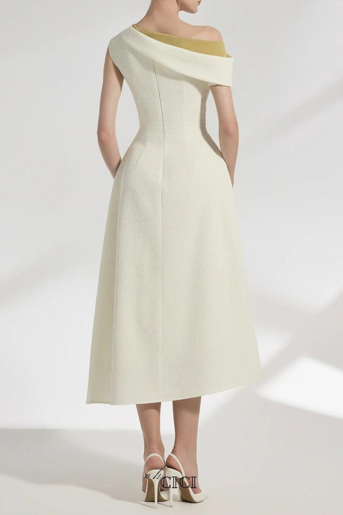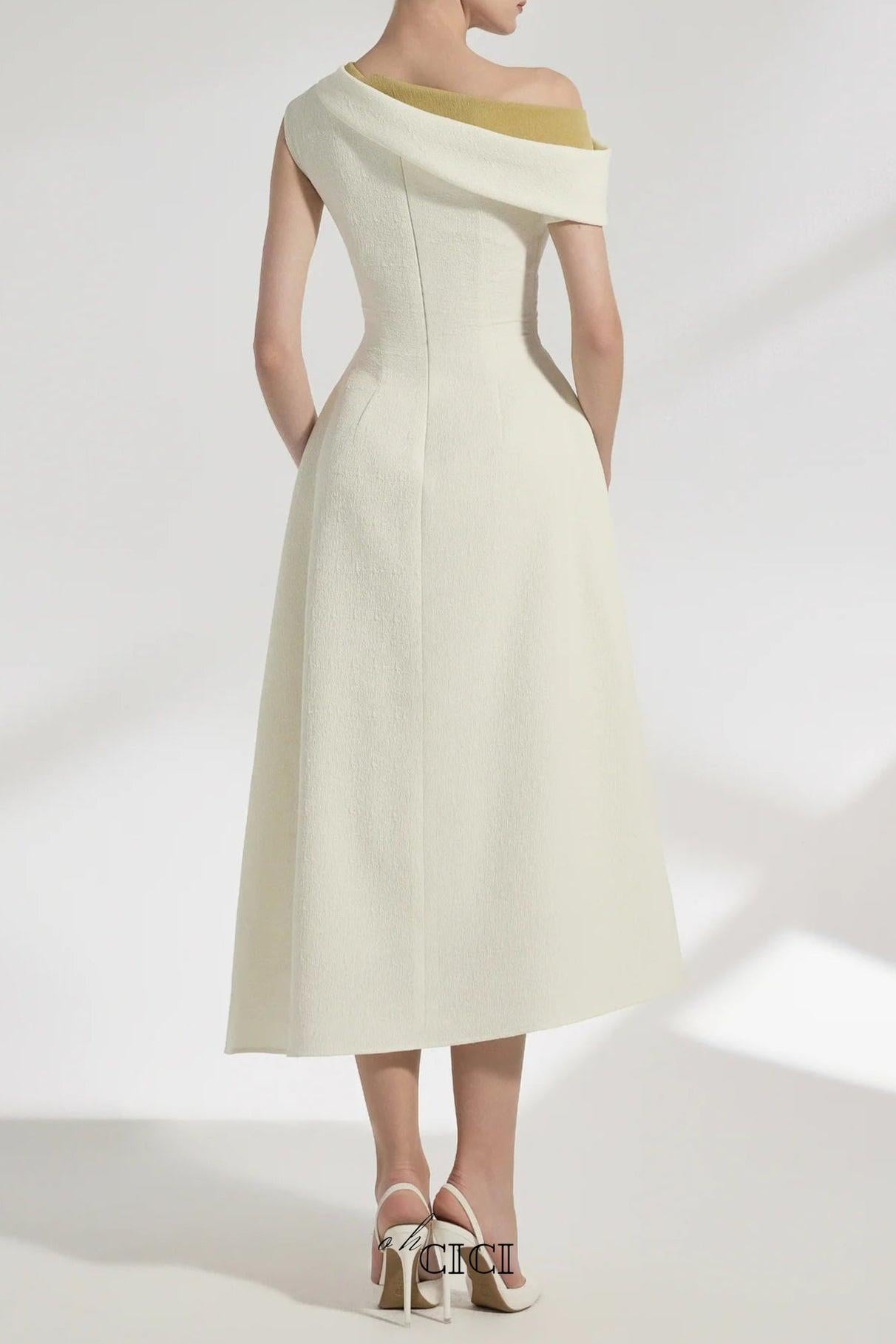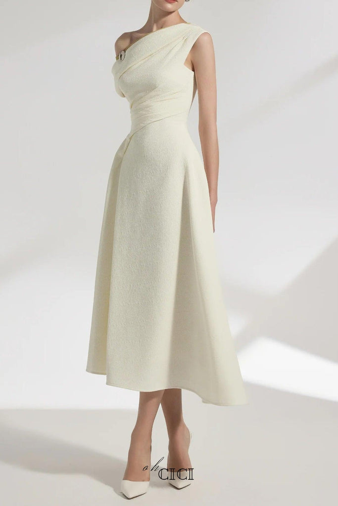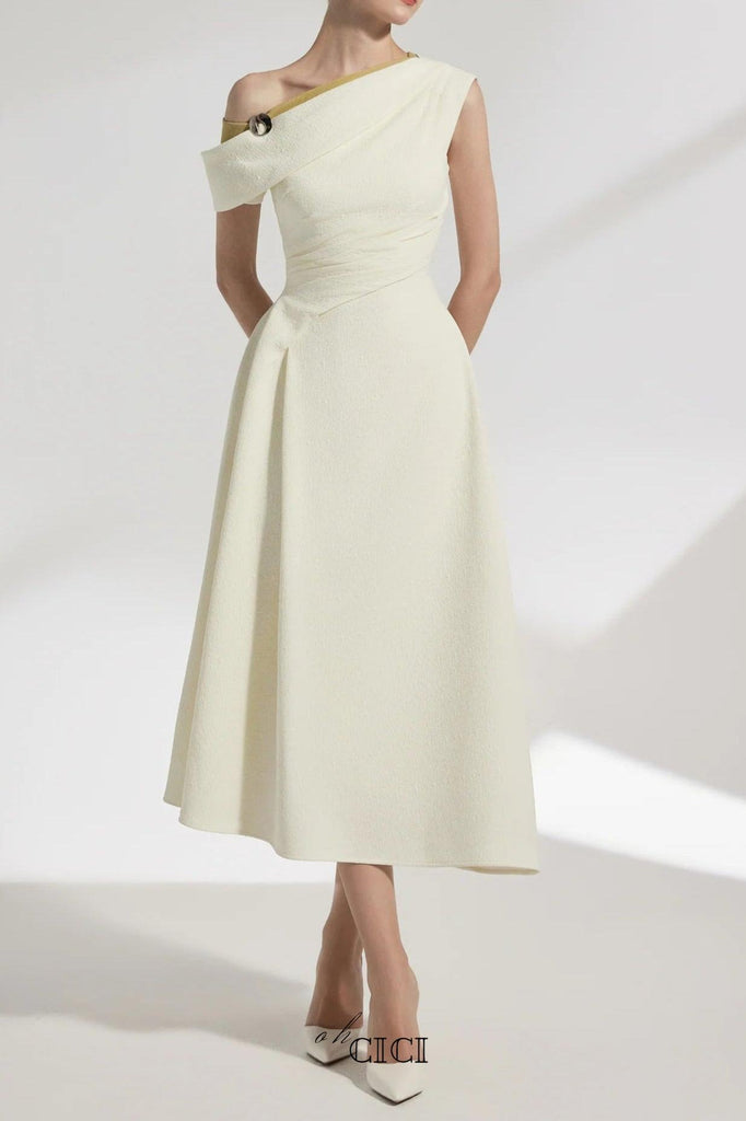lucy one-shoulder a-line midi dress in white – OH CICI