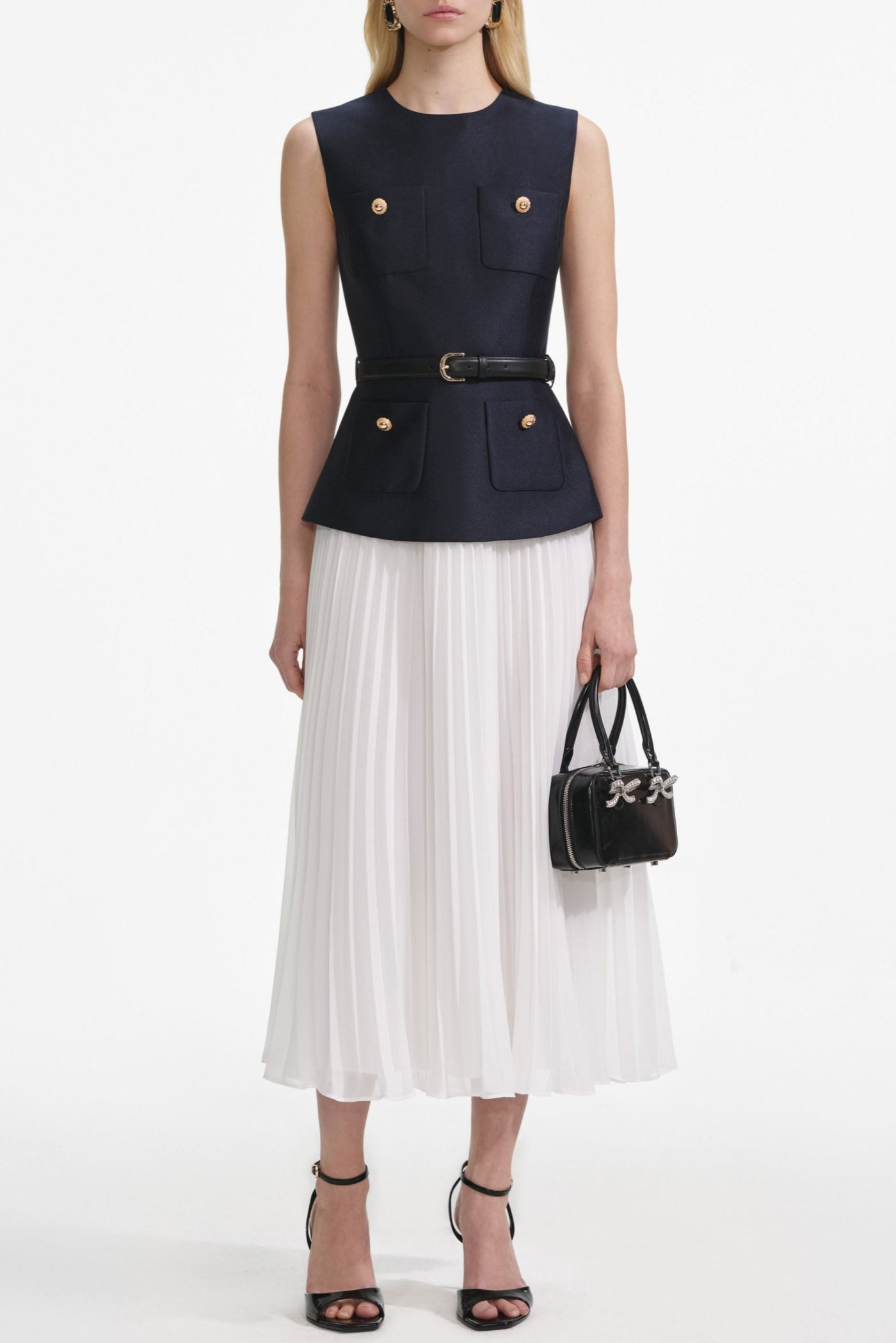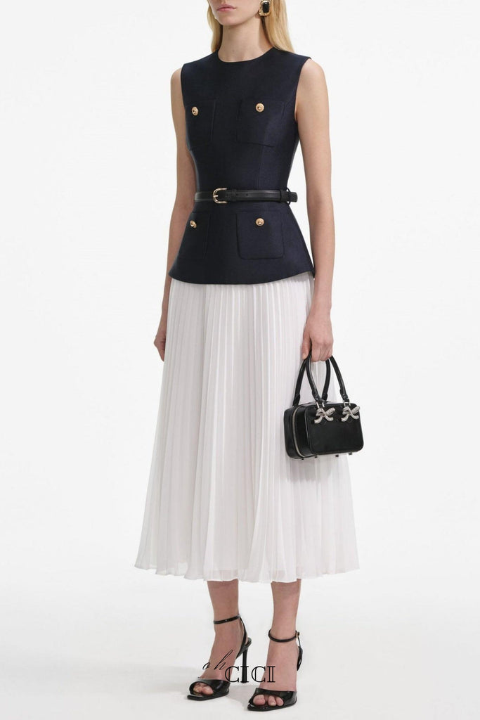 Elevate your wardrobe with the Sleeveless Belted Chiffon Midi Dress. Crafted from lightweight chiffon, this dress features a flattering belted waist that accentuates your silhouette while offering effortless elegance. Its sleeveless design and midi length create a refined look perfect for both daytime events and evening occasions. Embrace timeless sophistication with this versatile piece that combines comfort and style seamlessly.