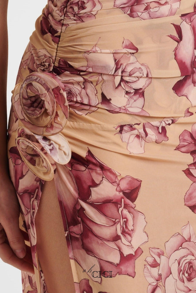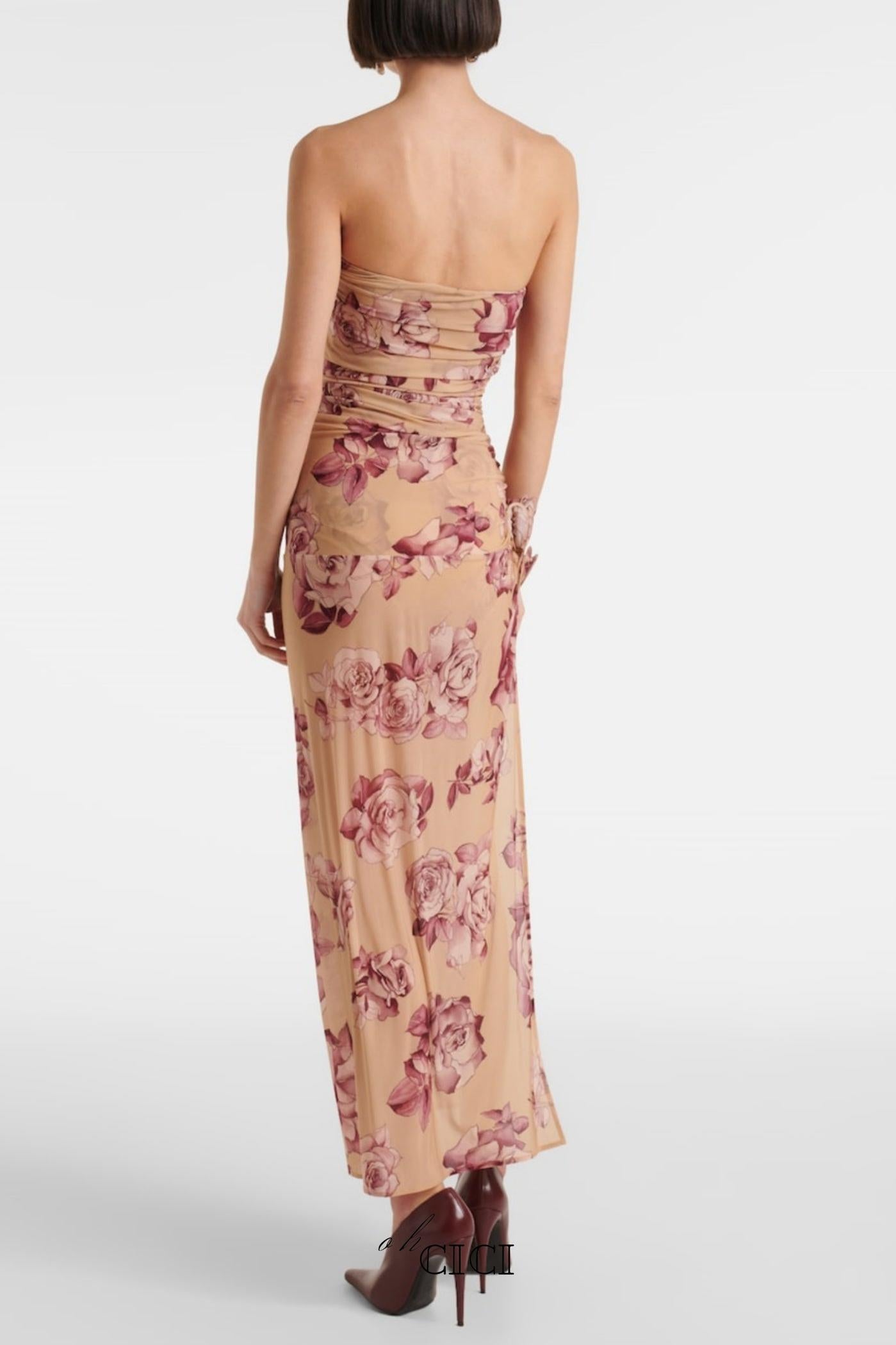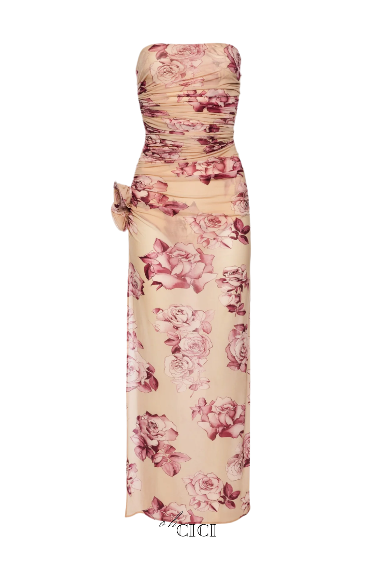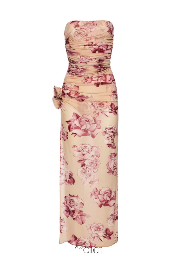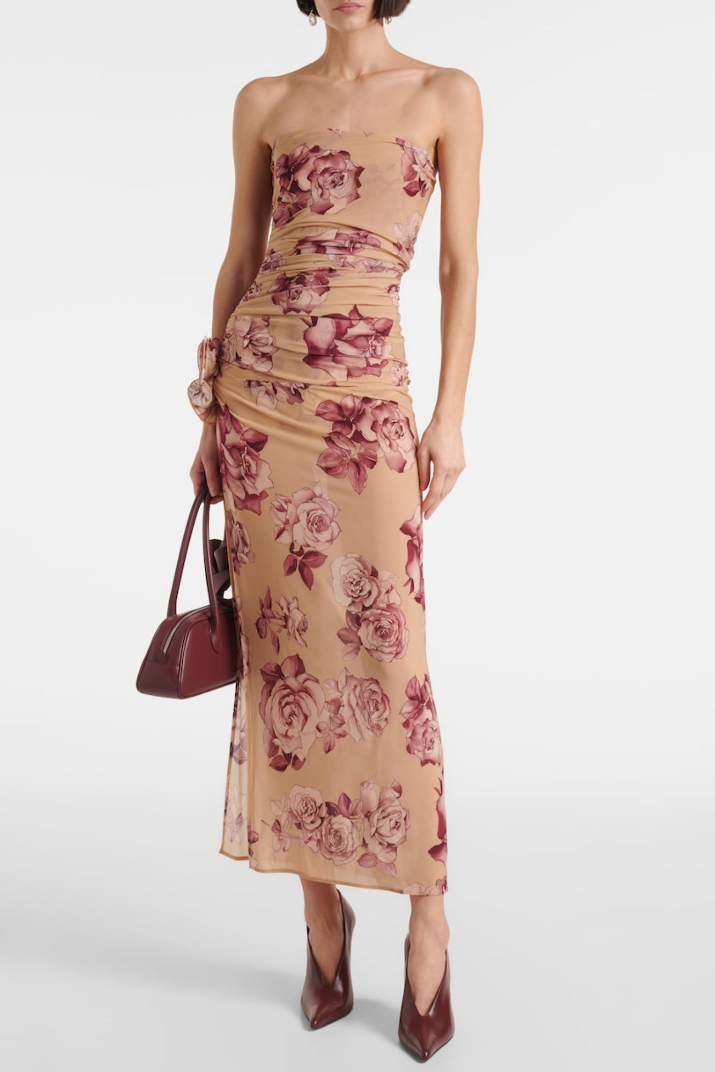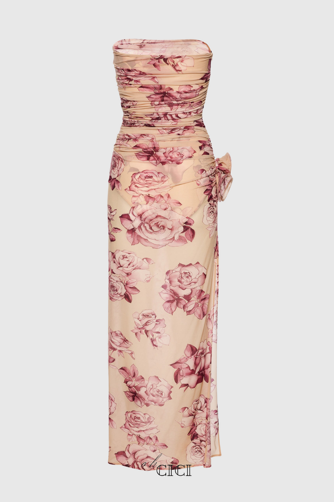 Taysia Floral Strapless Ruched Midi Dress – OH CICI