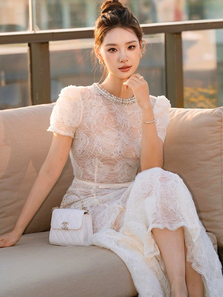 Elevate your wardrobe with the Tulle Lace Diamante Midi Dress in Beige, expertly crafted to combine delicate lace detailing with subtle diamante accents. This midi-length dress offers a refined silhouette that flatters while providing a sophisticated, timeless appeal. The soft beige hue enhances its versatility, making it suitable for both formal occasions and elegant daytime events. Designed with attention to detail, this dress balances texture and shimmer for a polished, graceful look.