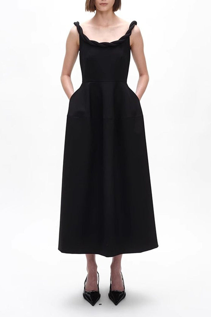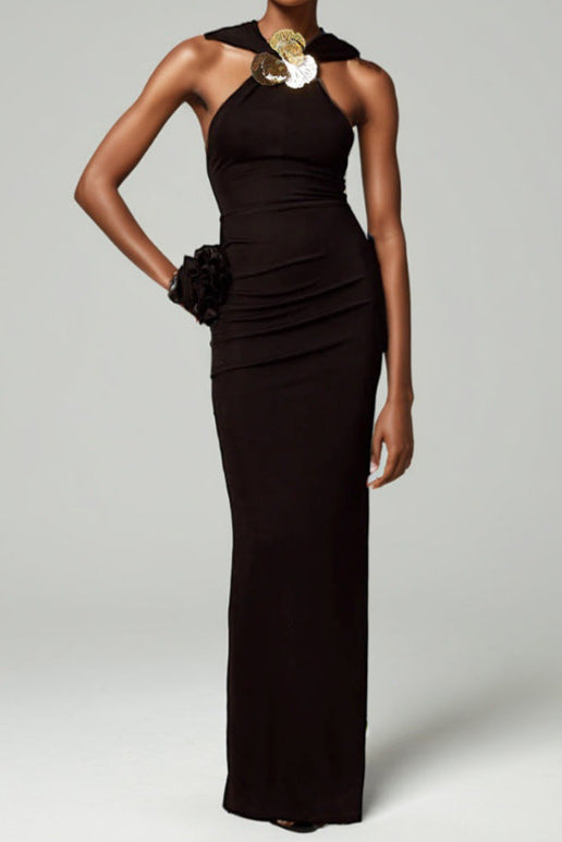 tammy Metal 3D Flower Hooded Midi Dress in black