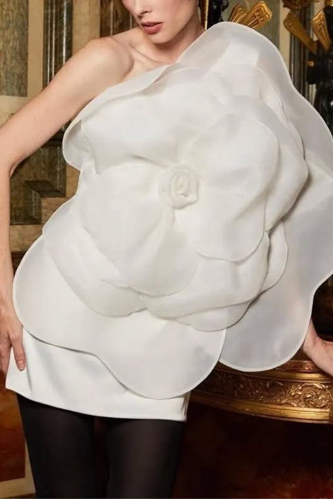 ONE SHOULDER FLOWER MINI DRESS IN WHITE