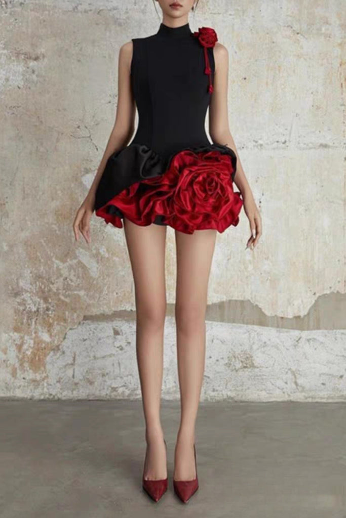 RHINESTONE ROSE APPLIQUE MINI DRESS IN PINK
