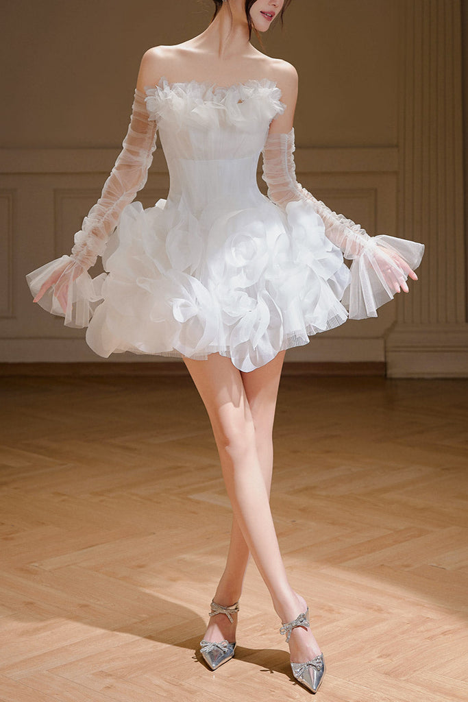 BESTE WHITE STRAPLESS A-LINE MINI DRESS