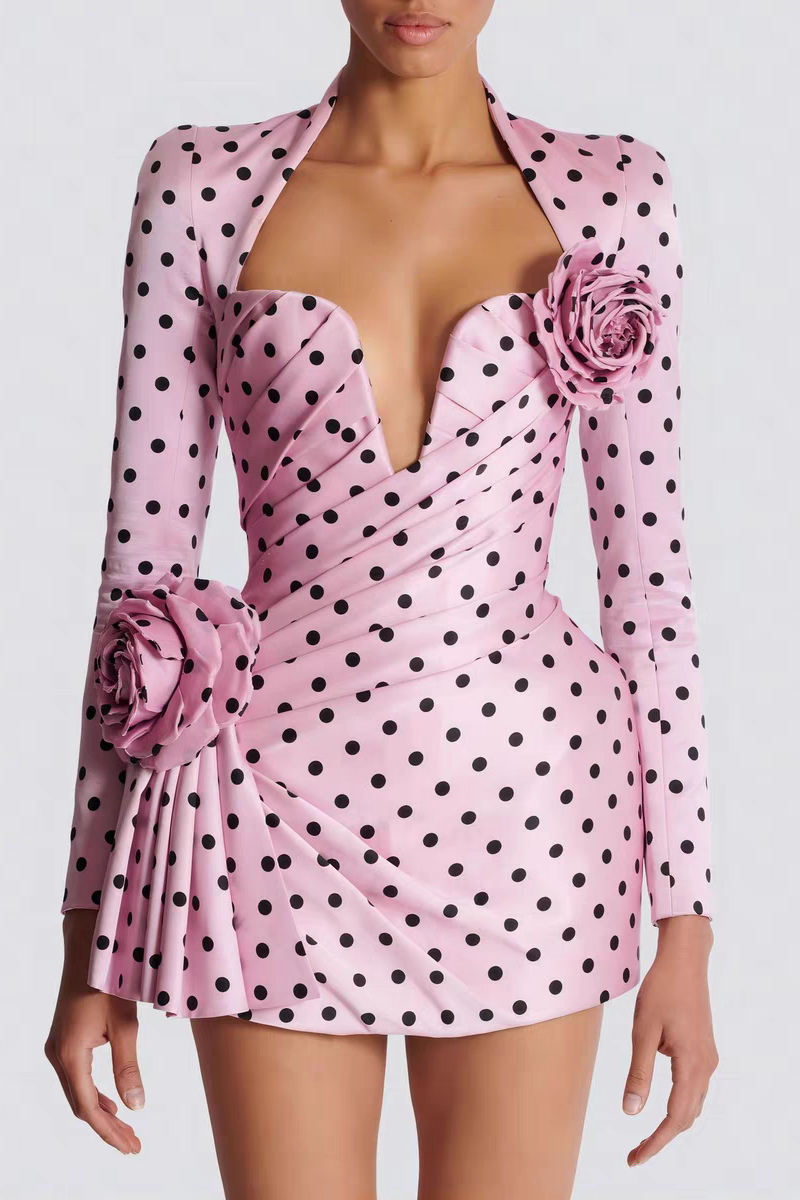 The Polka Dots short printed dress in pink is a fun and stylish addition to any wardrobe. The polka dot print adds a playful touch while the short length allows for easy movement and comfort. Crafted with high-quality materials, this dress is perfect for any occasion.