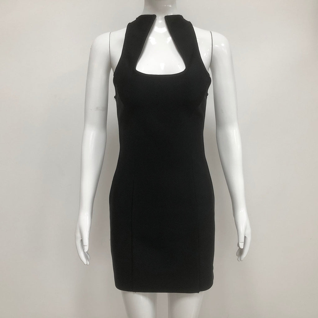 Sleeveless collarless bandage mini dress in black