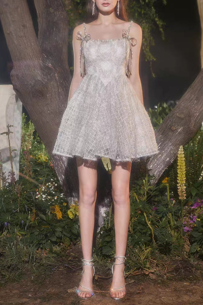SEQUIN STRAPPY BUBBLE MINI DRESS IN WHITE