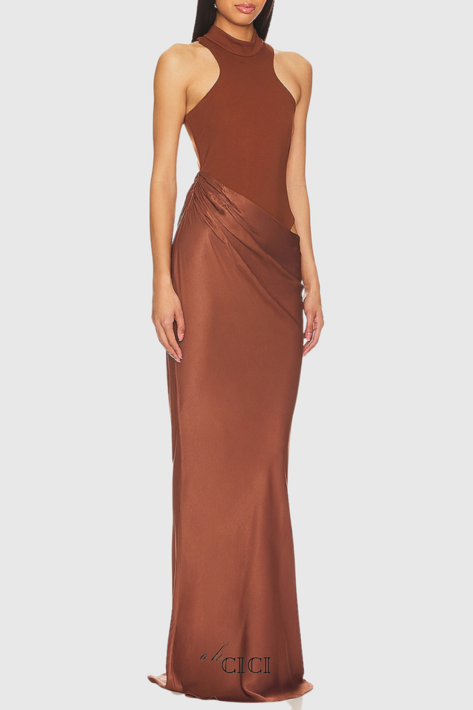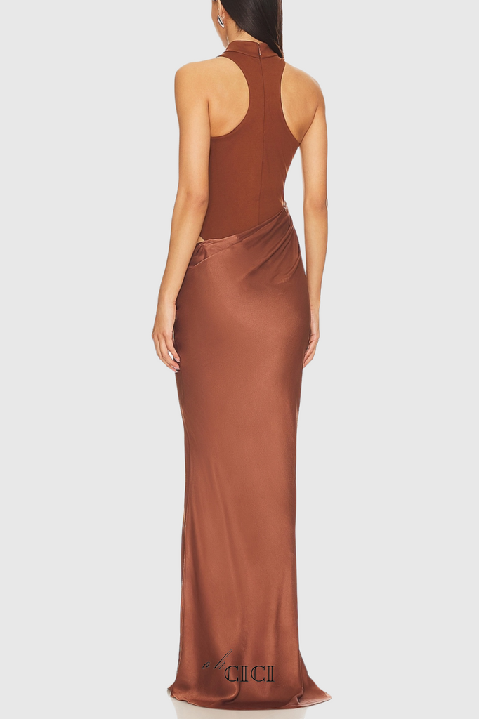 Indulge in luxury with the Ilya Asymmetrical Cutout Satin Maxi Dress. This sophisticated and exclusive dress features an asymmetrical cutout design and is made from premium satin material, providing both elegance and comfort. Perfect for a special event or a night out, this dress will make you stand out and feel like a true work of art.