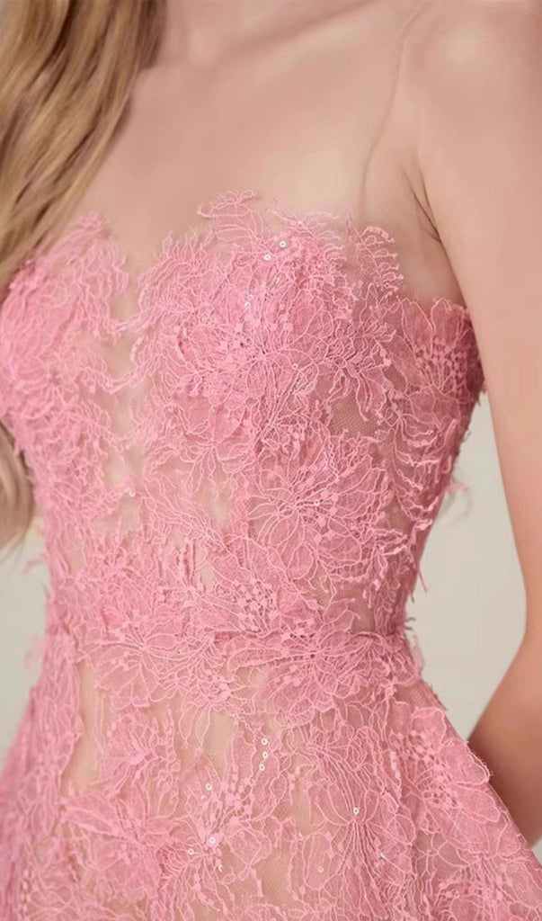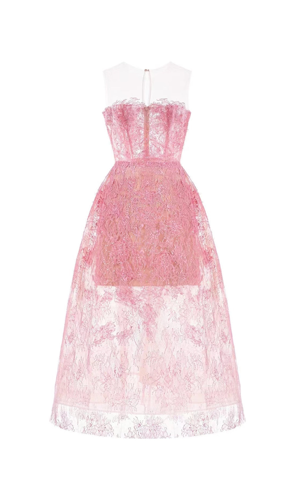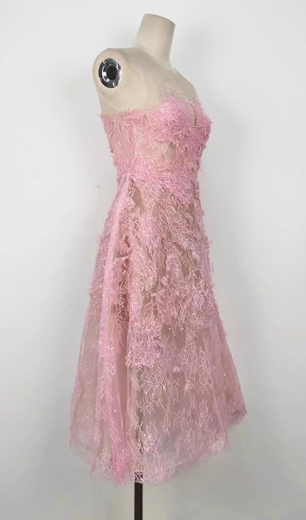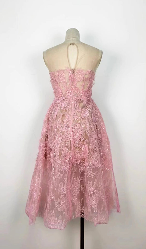 PINK FLORAL LACE EMBROIDER MIDI DRESS