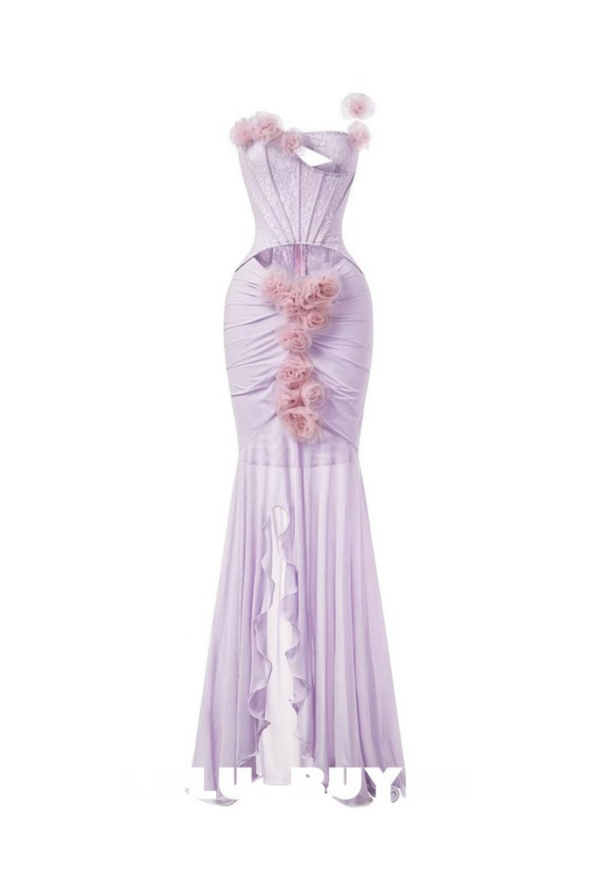 The Sigrid 3D Flower Strapless Fishtail Maxi Dress in Purple is a sophisticated statement piece designed for those seeking architectural elegance. The dimensional floral embellishments create visual depth and movement, while the strapless silhouette offers a refined, modern aesthetic. The fishtail hem provides dramatic flair and graceful flow, making this dress ideal for formal events, galas, or upscale celebrations. Crafted with attention to detail, this purple maxi delivers both structure and femininity for a polished, memorable look.