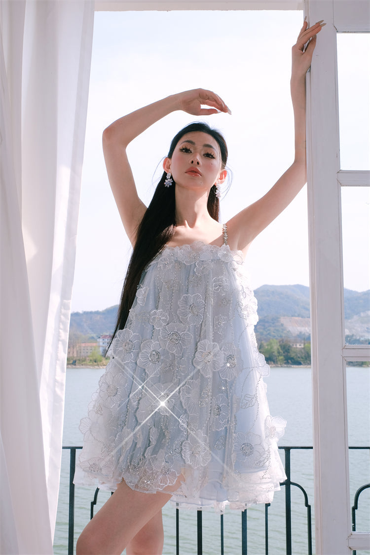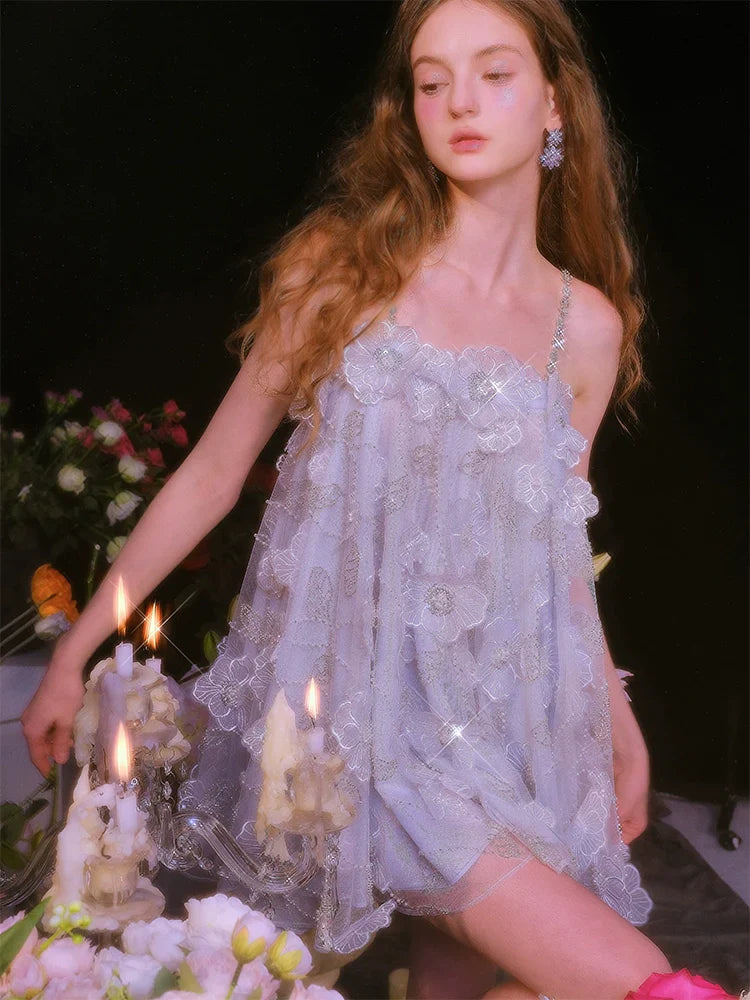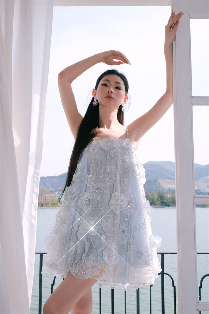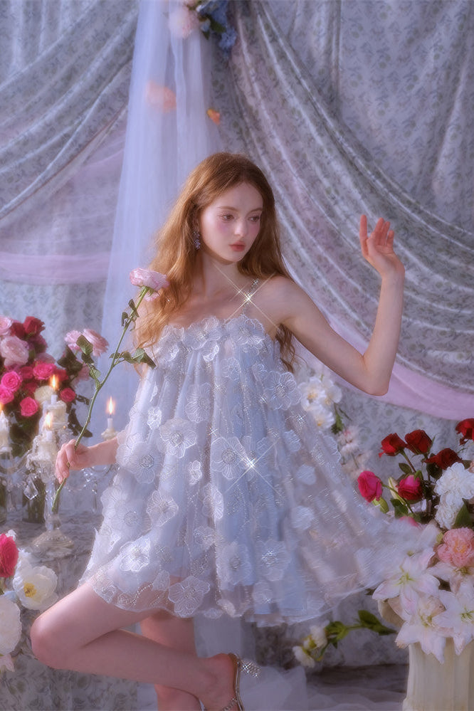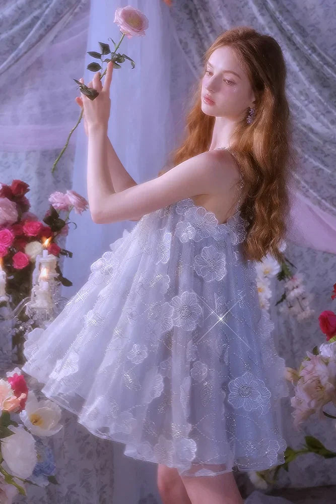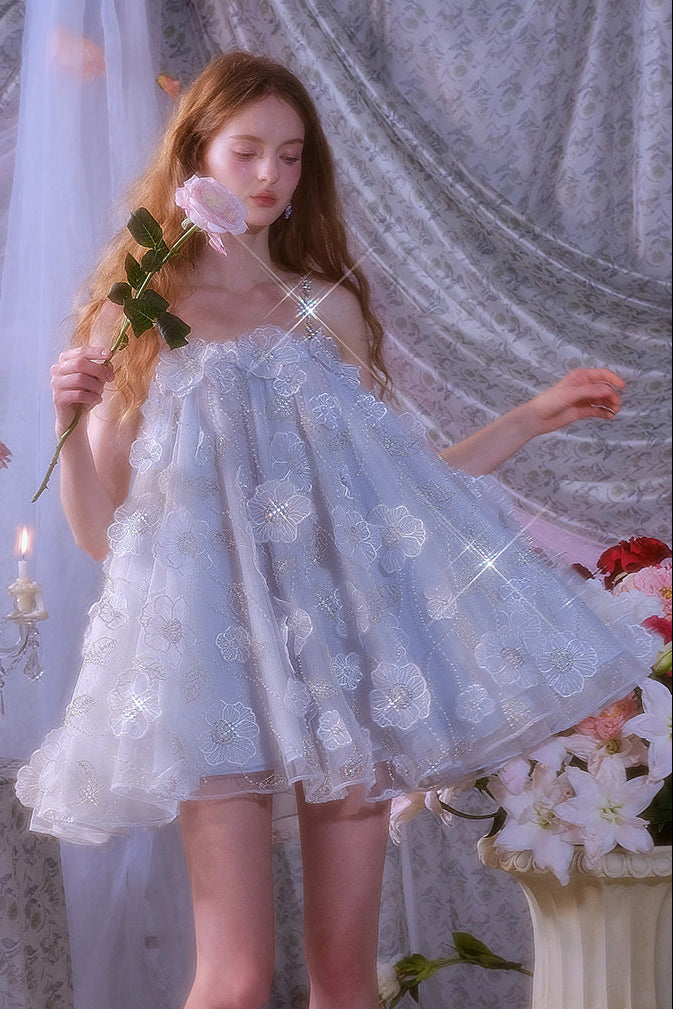 Tutu Light Blue Sleeveless Flower Diamond Short Doll Dress – OH CICI
