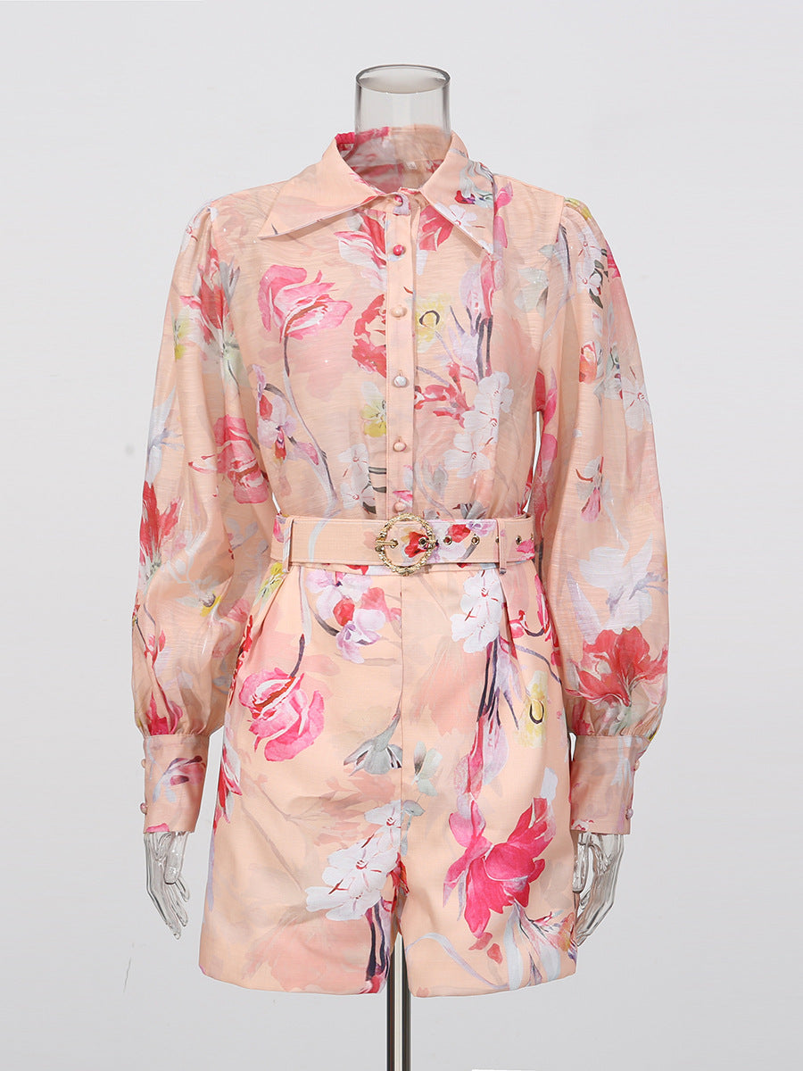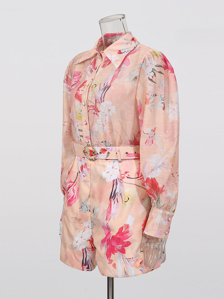 orange jenny floral printed shirt shorts set