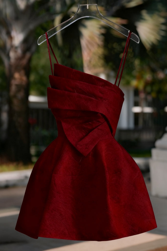 ROSE RED FLOWER STRAP CORSET MINI DRESS