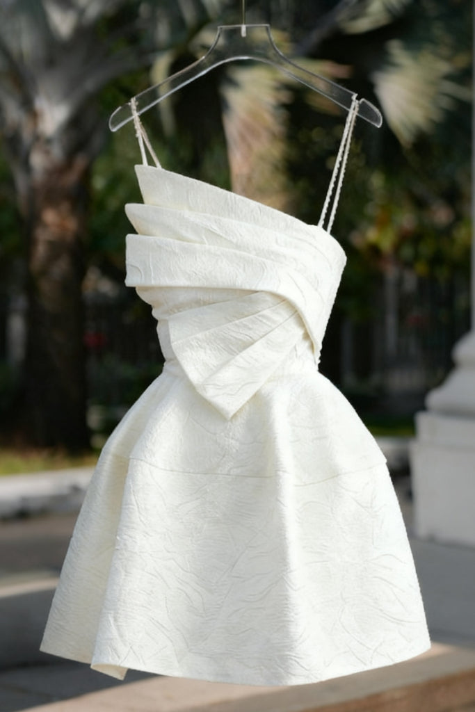 WHITE ONE SHOULDER BOWKNOT MINI DRESS