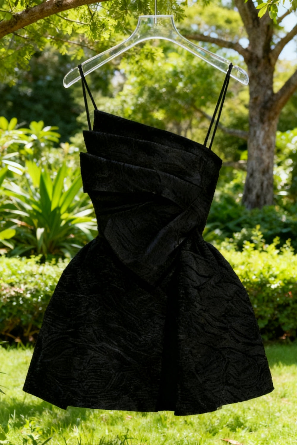 Strapy Hem Mini Dress in Black from Ohcici. This dress is perfect for summer days and nights with its playful and flirty strappy design and hemline that falls above the knee. The light and airy white fabric makes it comfortable to wear on even the hottest days. Versatile and can be dressed up or down depending on the occasion.