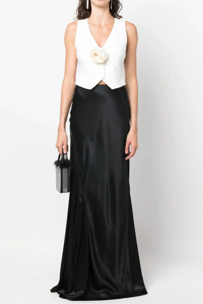 white V-Neck Sleeveless Diamond Midi Suit Top