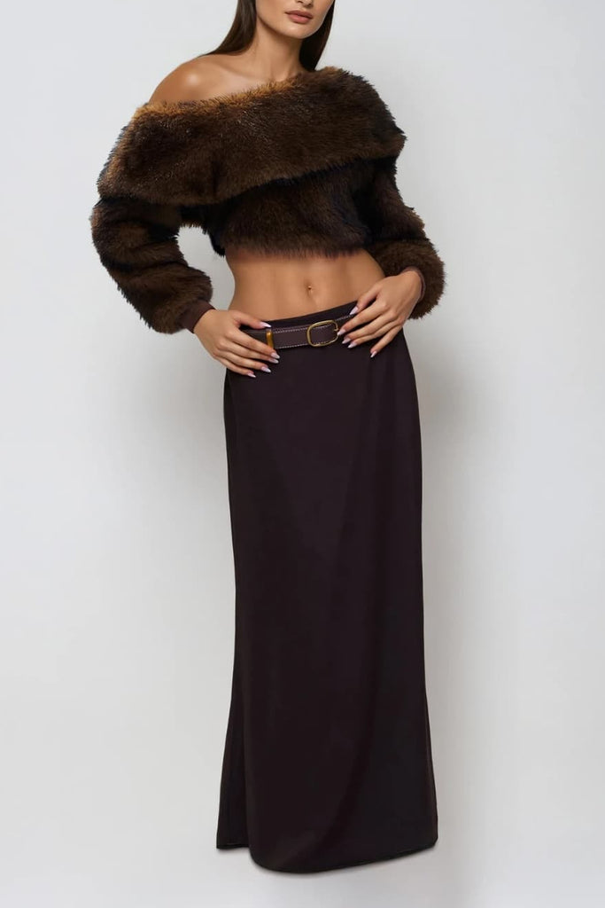 RAW EDGE CROP TOP AND SKIRT TWO-PIECE SET