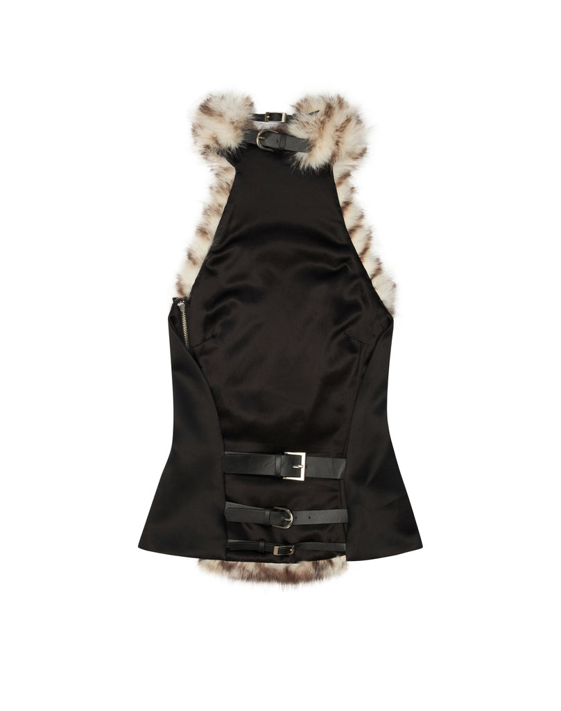 Dora Halter Backless Furry Top This statement piece combines bold design with luxurious texture. The halter neckline provides secure support while the backless silhouette creates an alluring, contemporary look. Crafted with plush furry fabric, it delivers softness and visual depth that elevates any ensemble. The structured halter construction ensures a flattering fit, making it ideal for evening events, parties, or fashion-forward occasions. Perfect for those seeking to make a confident style statement with an unexpected twist on classic elegance.