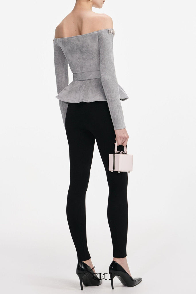 molly Grey Chenille Knit Crystal Trim Top – OH CICI