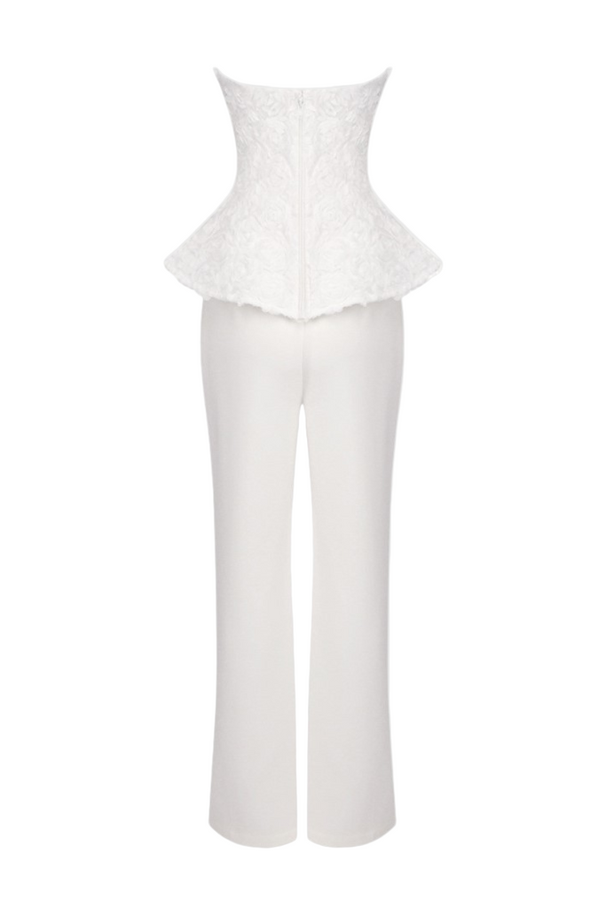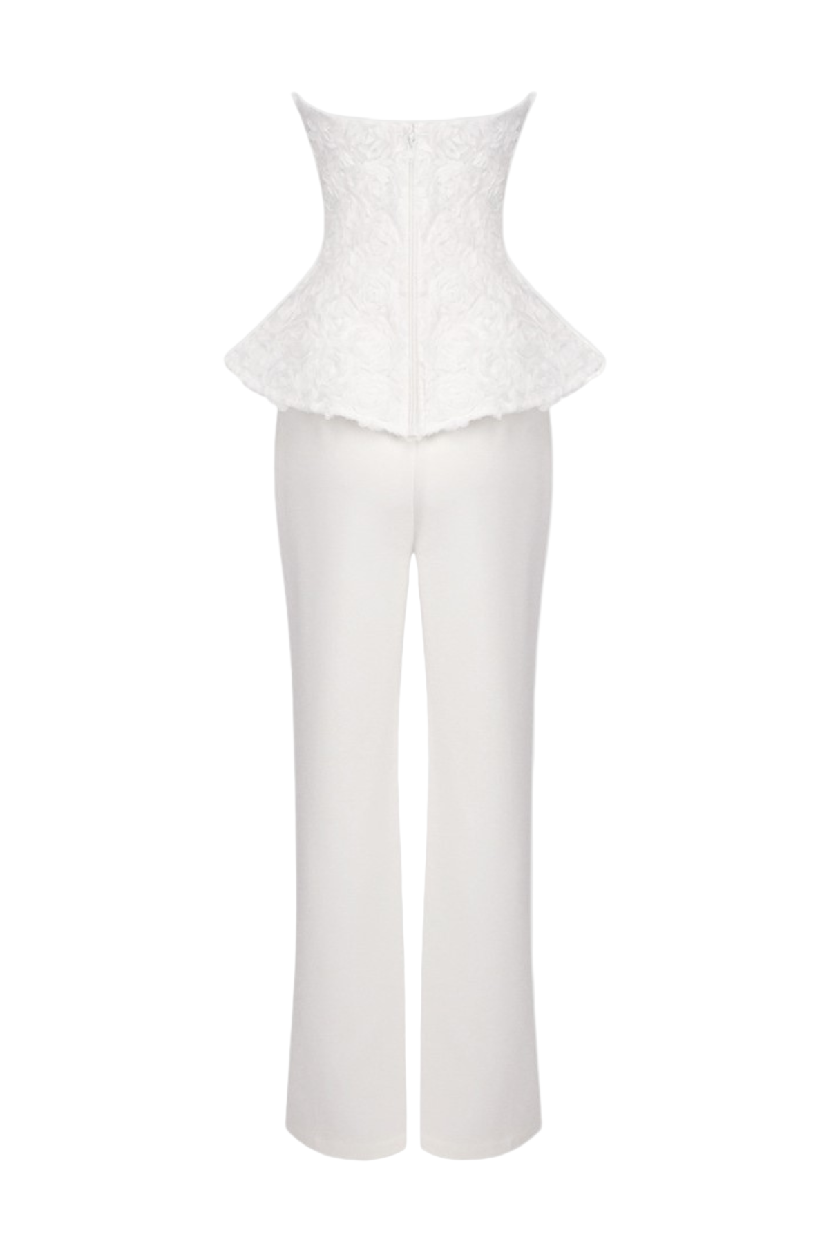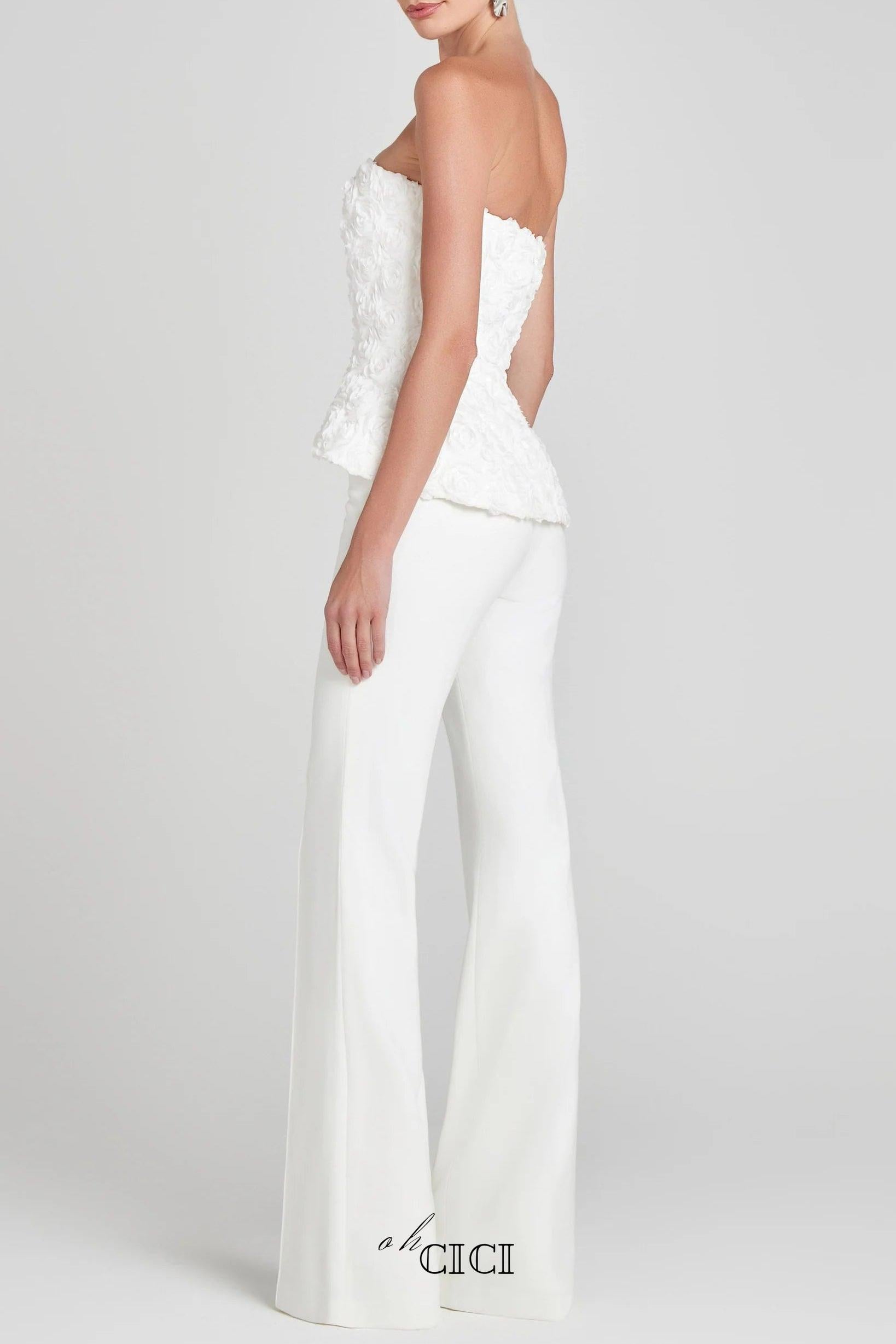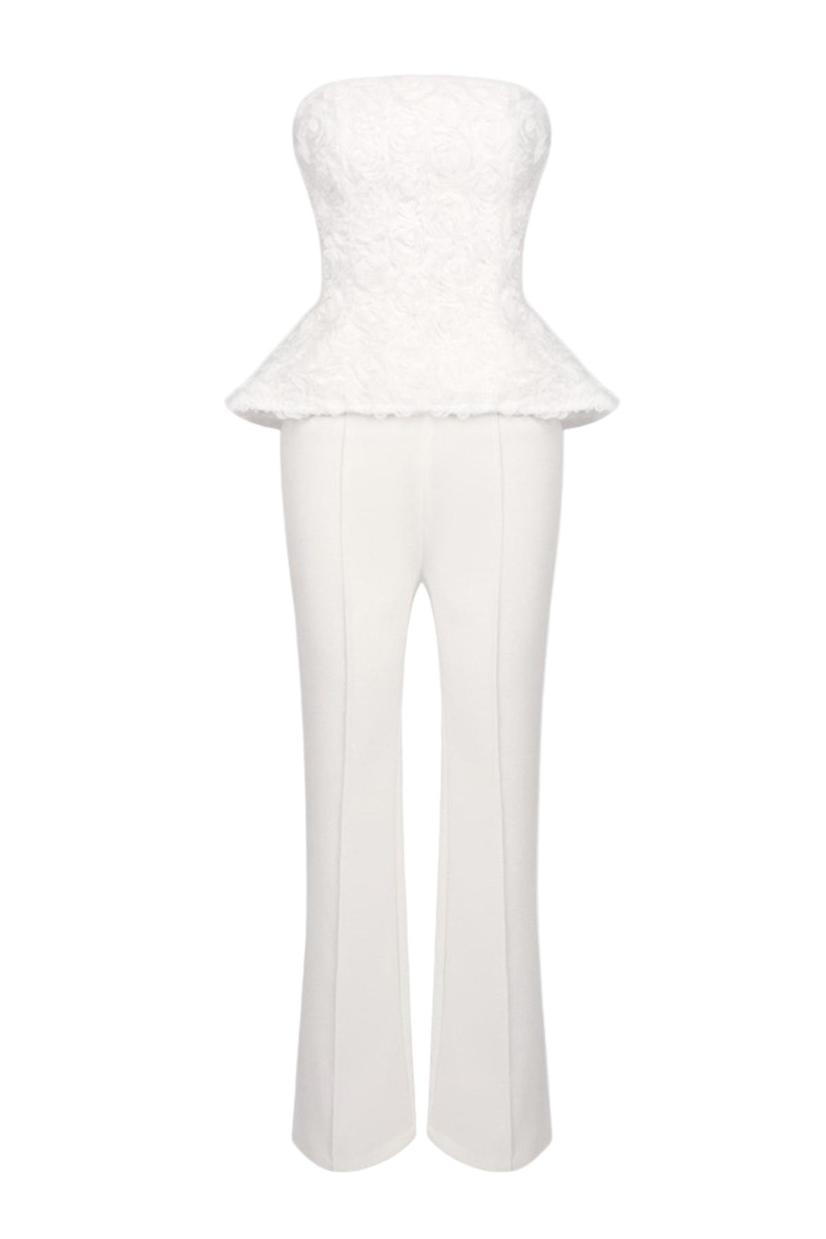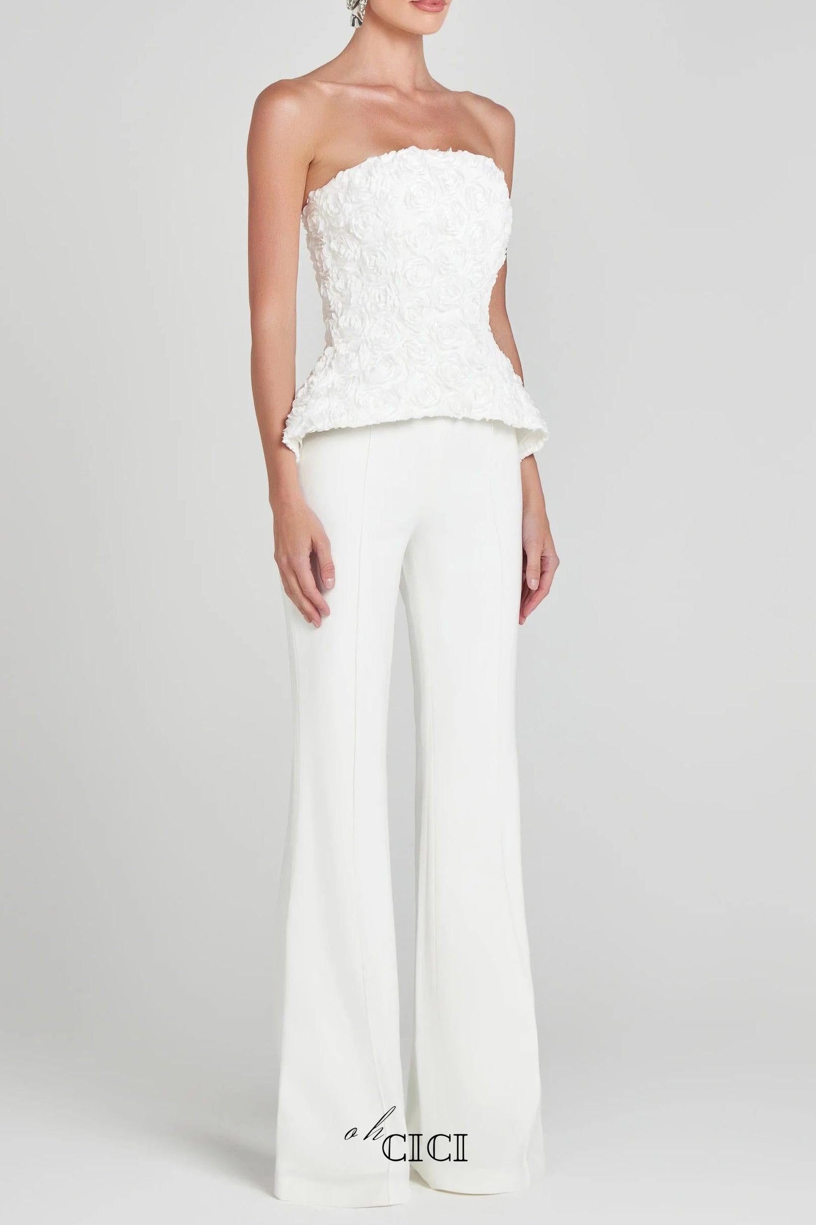 Elevate your wardrobe with the Georgia 3D Flower Top Pants Set in White. This sophisticated two-piece ensemble features dimensional floral detailing on the top that adds visual interest and texture. The coordinating pants offer a clean, tailored silhouette that balances the statement top. Crafted for versatility, this set works beautifully for casual outings or dressed up for special occasions. The crisp white palette ensures easy styling with accessories and layers. Perfect for those seeking contemporary fashion with refined details.