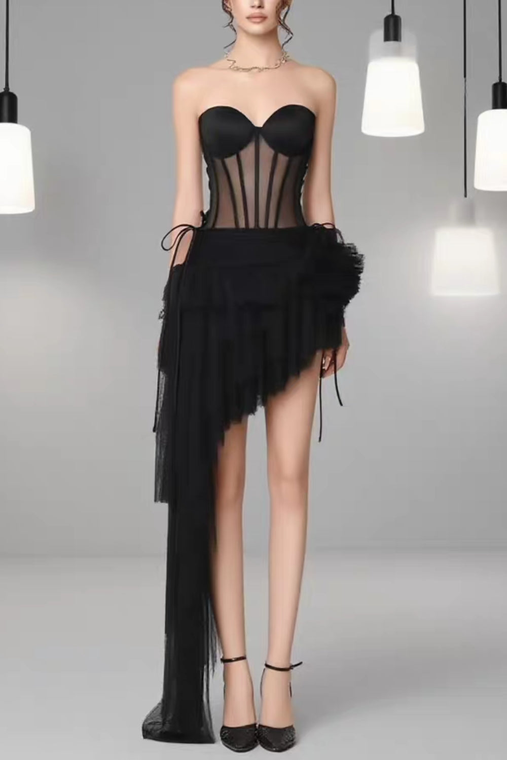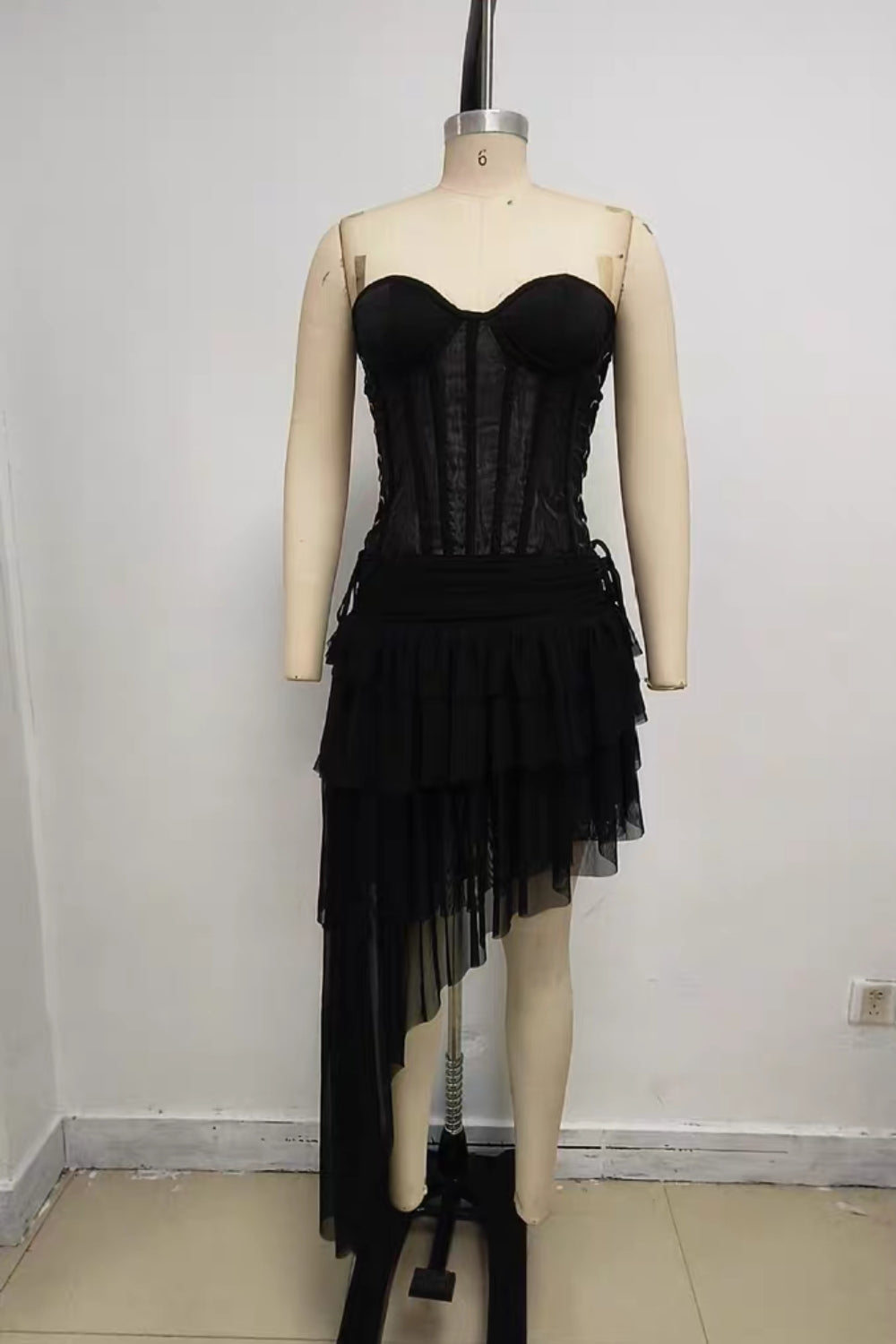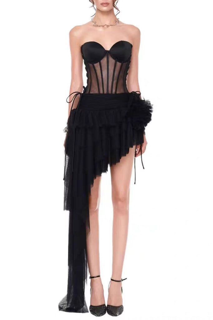 The Black Corset Top & Irregular Mesh Skirt Two Pieces Set is a fierce, fashion-forward ensemble that blends gothic romance with avant-garde edge. This striking two-piece set features a structured corset top with intricate boning and lace-up detailing, paired with a dramatic high-low mesh skirt featuring irregular hemline cutting for a deconstructed, runway-ready look. Perfect for nights out, editorial events, or bold street style moments, this set commands attention with its dark glamour and architectural silhouette.