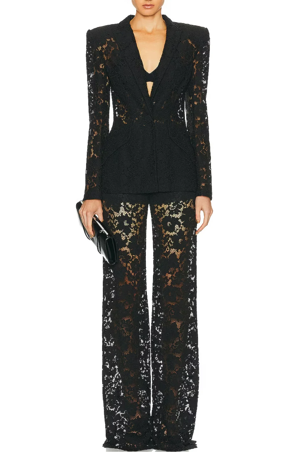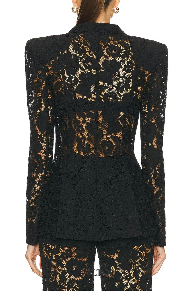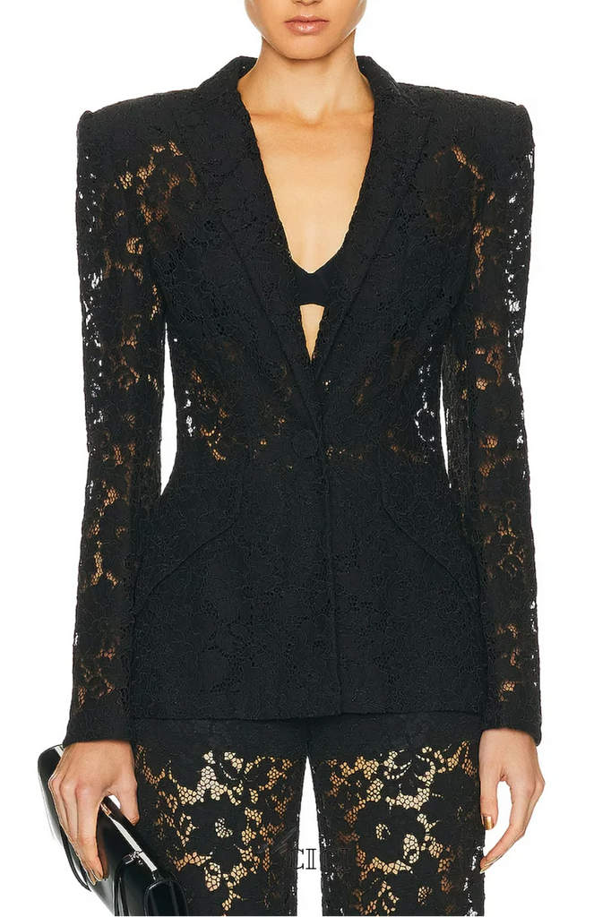 The Elvira V-Neck Lace Blazer Set combines sophisticated tailoring with delicate detailing. This expertly crafted ensemble features a refined v-neckline and intricate lace accents that elevate any occasion. The classic black colorway ensures versatility, pairing seamlessly with both professional and evening wear. Constructed with attention to quality construction, this set delivers polished elegance with modern appeal. Perfect for those who appreciate understated luxury and timeless style.