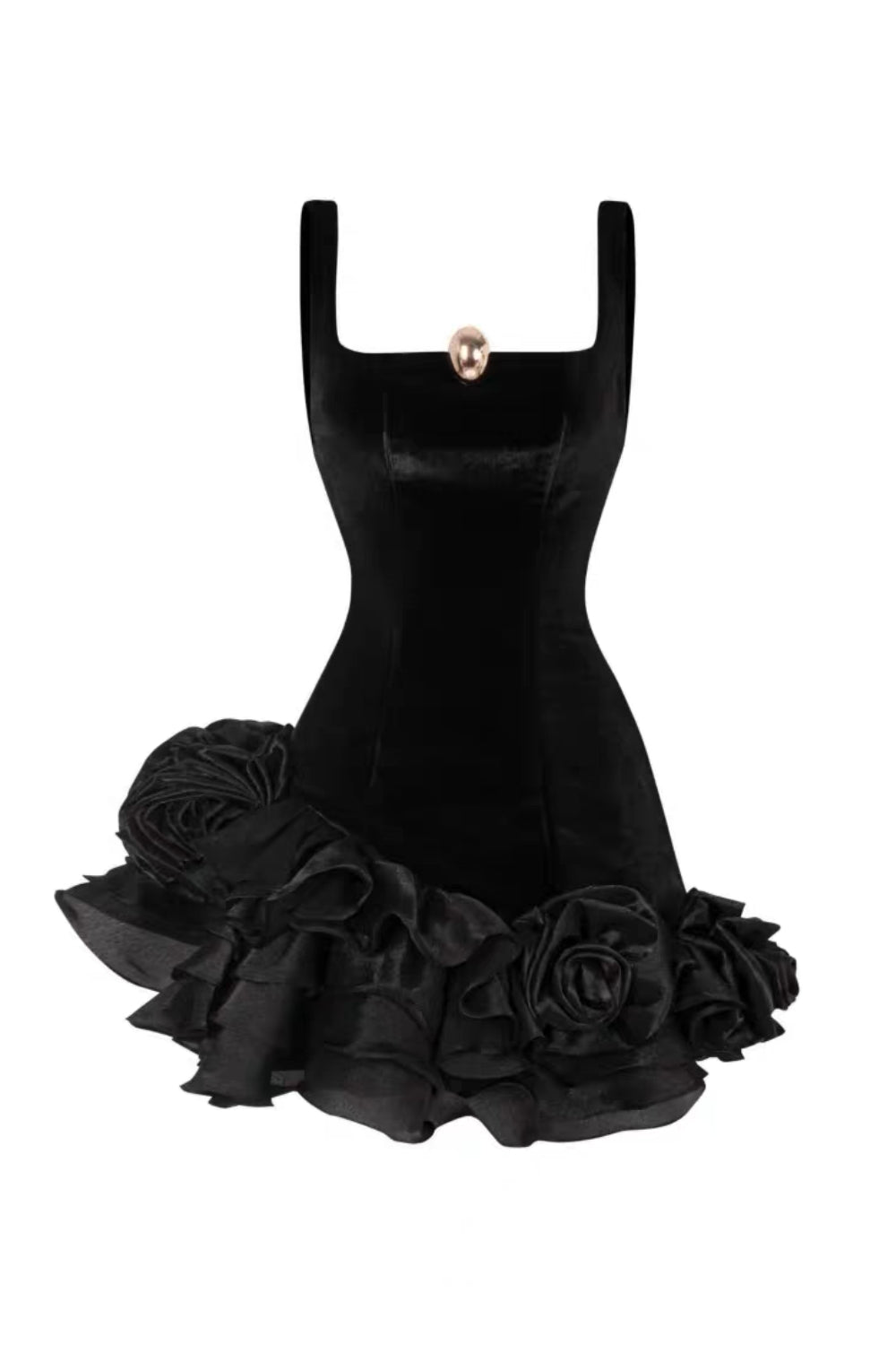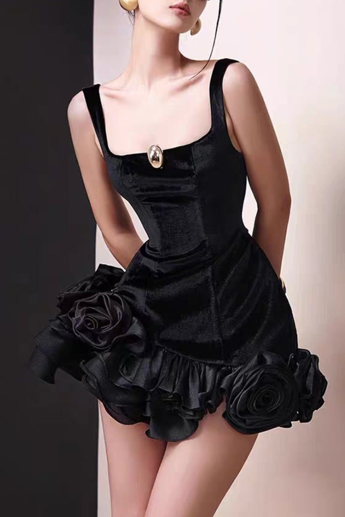 The Renata Mini Dress features a sophisticated square neckline and a luxurious black velvet fabric adorned with subtle floral patterns. Its flattering silhouette and mini length offer a modern, elegant look, perfect for evening events or upscale gatherings. The soft velvet texture adds depth and comfort, while the distinct floral design enhances feminine refinement with an expert-crafted finish.