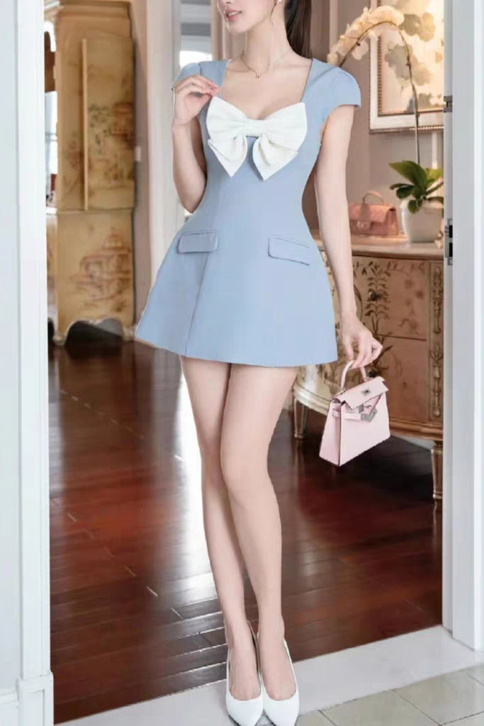 BABY BLUE CRYSTAL BOW MINI DRESS