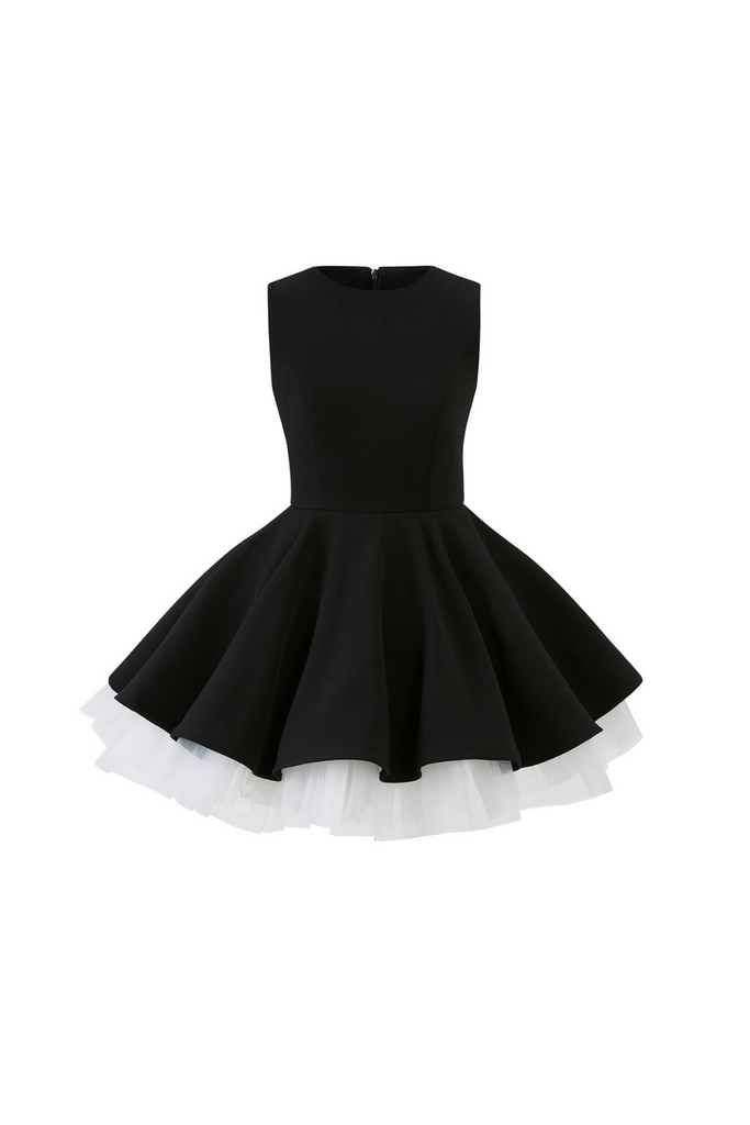 STRETCH LONG SLEEVES FEATHER MINI DRESS IN BLACK