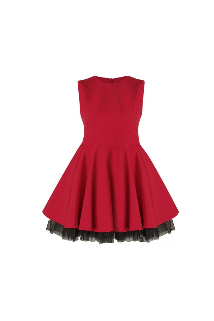 OFF SHOULDER PRINTED MINI DRESS IN RED
