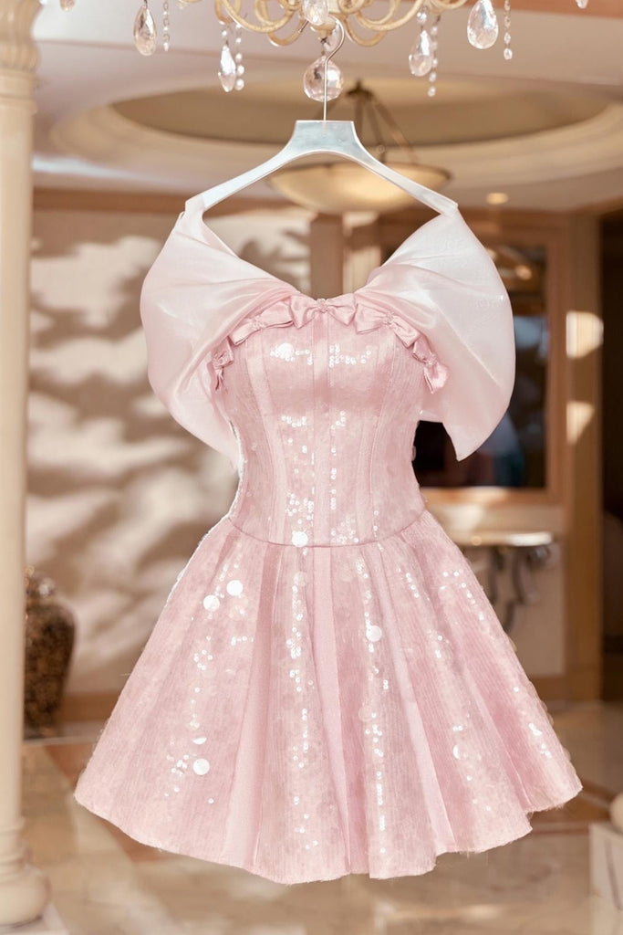 STRAPLESS SEQUIN MINI DRESS IN PINK