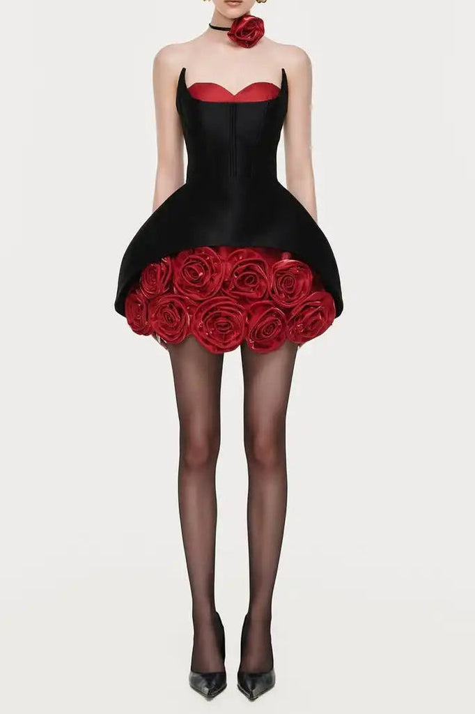 Rosario Appliqué Floral Bustier Mini Dress in black