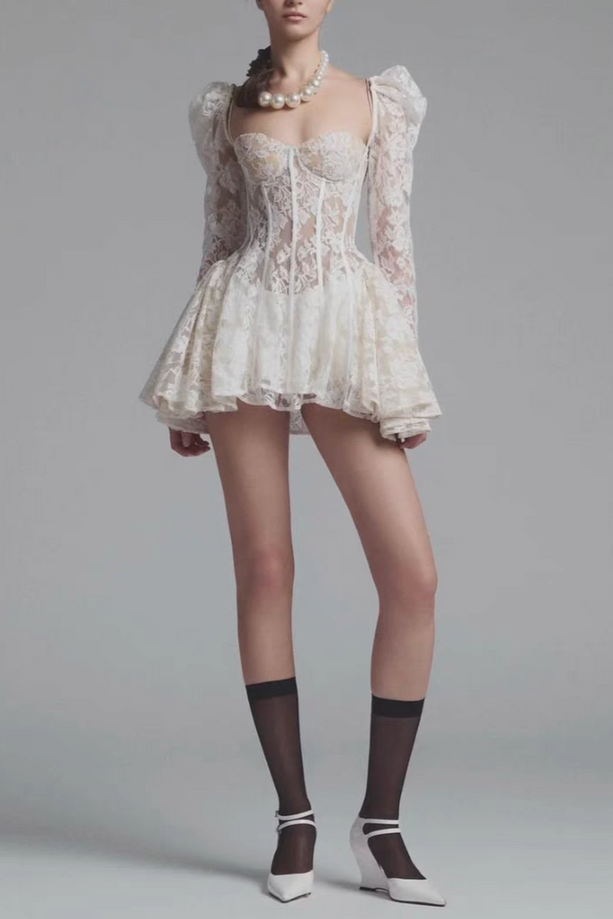 ADITI WHITE FLOWER LACE WEDDING MAXI DRESS