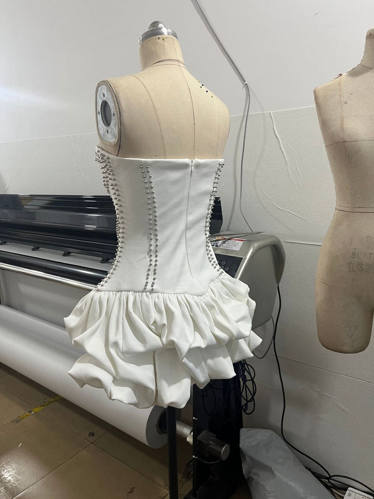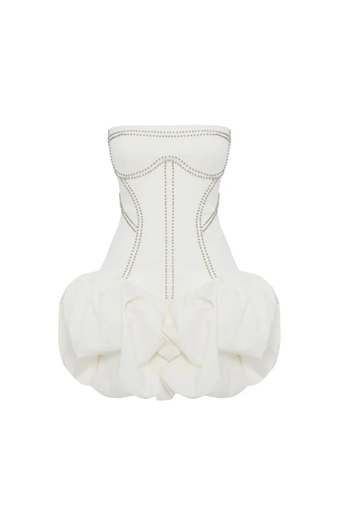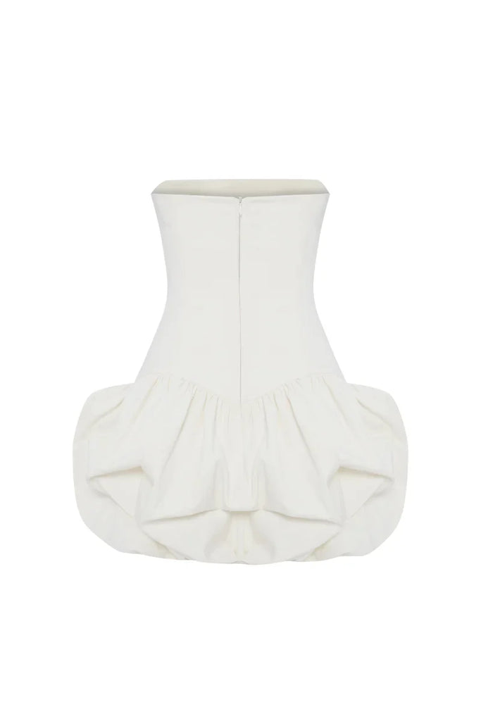 The Regina strapless puffy mini dress delivers effortless elegance with its structured silhouette and romantic volume. Crafted in a soft off-white tone, this piece features a strapless neckline that elongates the frame while the voluminous skirt creates movement and dimension. Perfect for cocktail events, celebrations, or elevated casual occasions, the mini length offers a modern take on classic femininity. The dress's clean lines and refined construction make it versatile enough to style with minimalist accessories or statement pieces, ensuring you'll reach for it season after season.