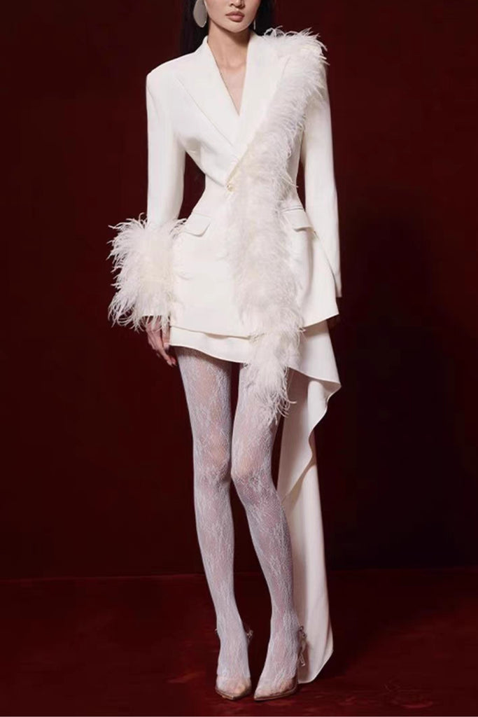 Ruffle Sleeve Blazer Mini Dress - Beige