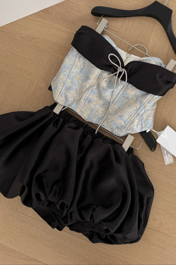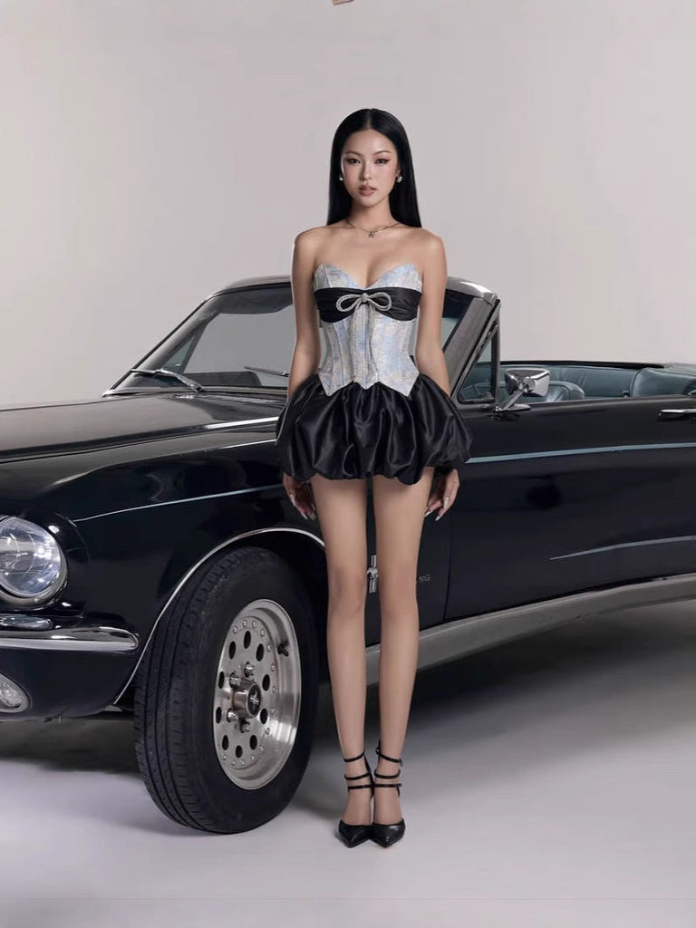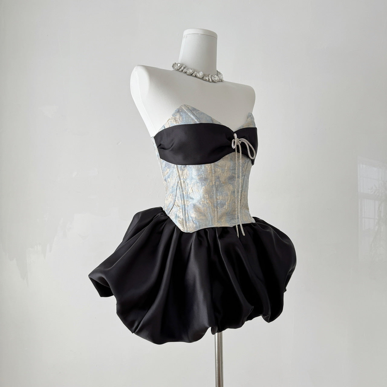 The Bethari Strapless Corset Puffy Mini Dress is expertly designed for a stunning and sophisticated look. With a strapless corset bodice and puffy mini skirt, you'll feel confident and stylish at any event. Crafted with quality materials, this dress offers a flattering fit and comfortable wear. Elevate your wardrobe with this must-have dress.