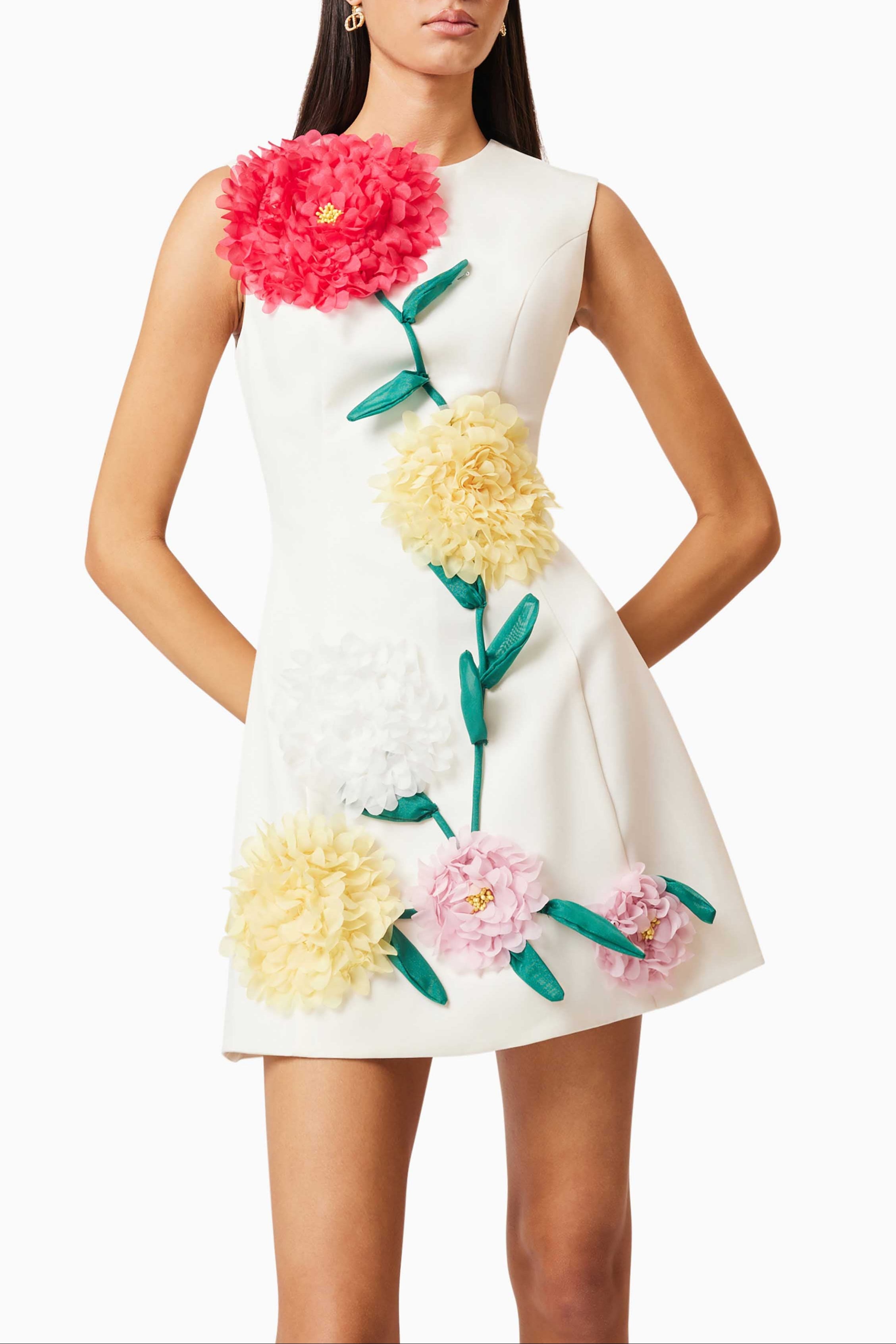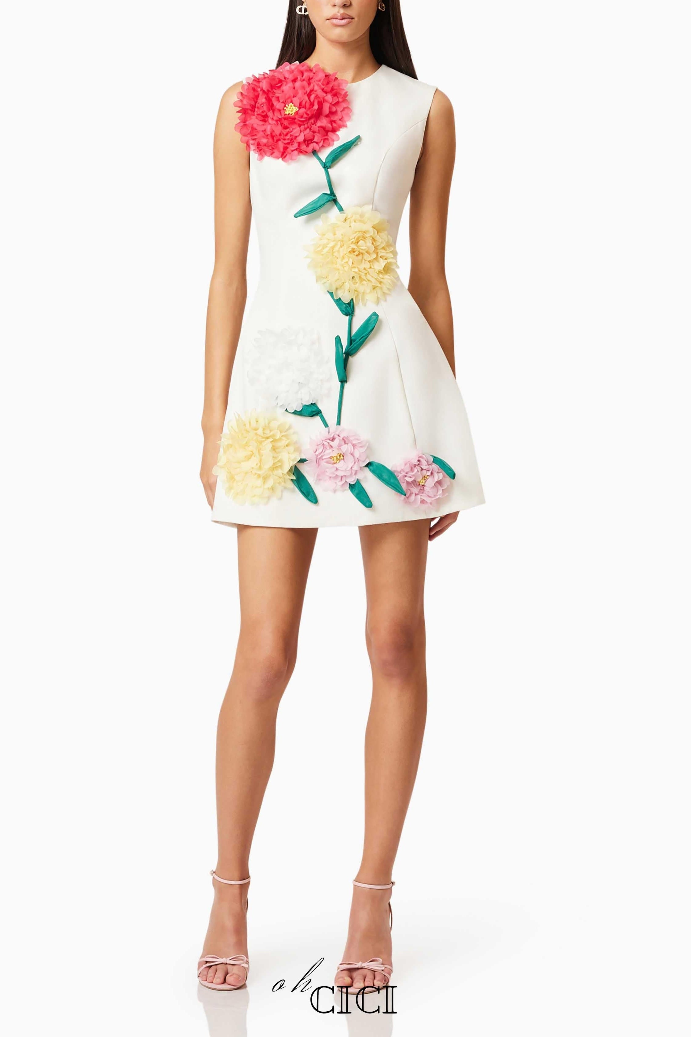 The Buttercup Mini Dress in Ivory is the perfect choice for a chic, elegant look. This sleeveless white mini dress features a flattering A-line silhouette that’s both stylish and comfortable. What truly makes this dress stand out is the stunning multi-colour 3D flowers, delicately embroidered throughout the fabric, adding a vibrant touch to the classic ivory base.