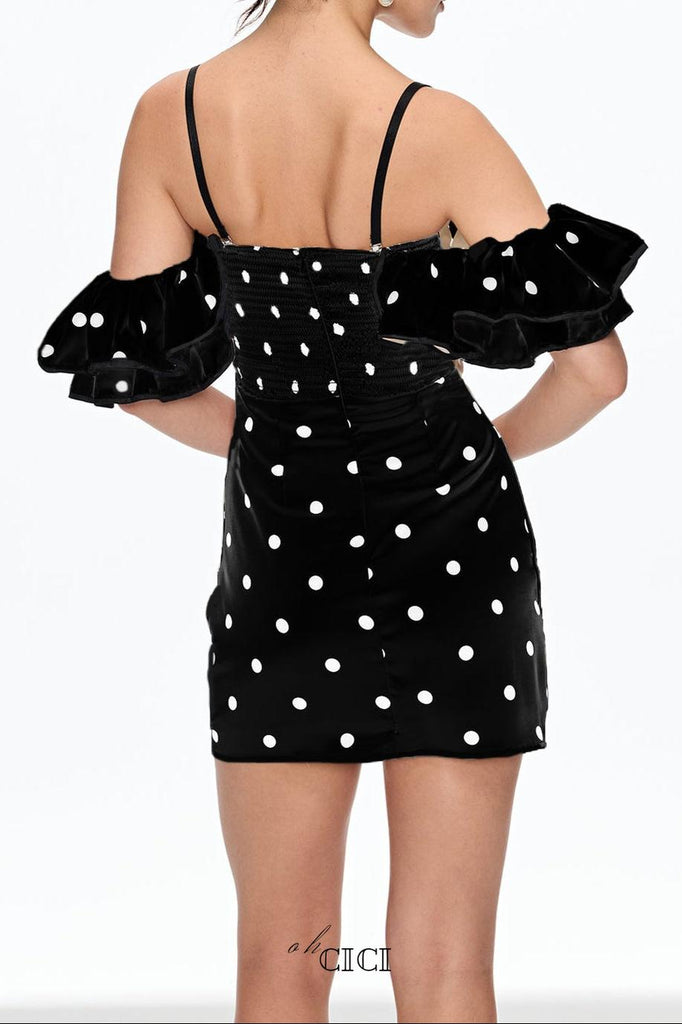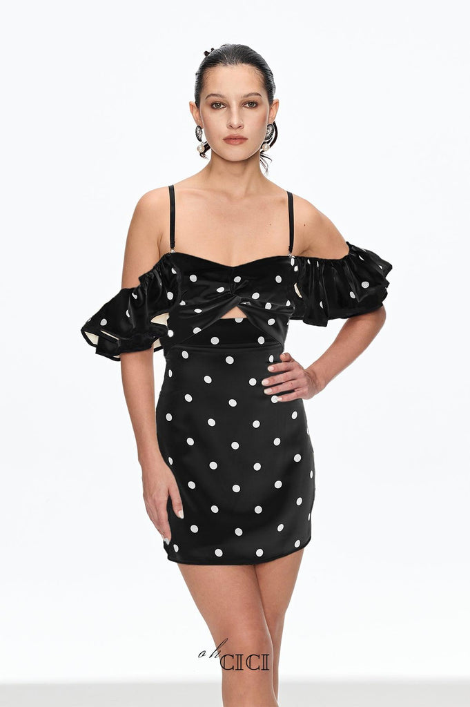 The janice Dot Off Shoulder Mini Dress in Black combines timeless elegance with a playful silhouette. Featuring a flattering off-shoulder neckline and a delicate dotted pattern, this mini dress offers a sophisticated yet youthful look. Its lightweight fabric ensures comfort and ease of movement, making it ideal for both casual outings and evening events. Perfectly tailored to enhance your figure, this dress is a versatile addition to any wardrobe seeking refined style with a modern twist.